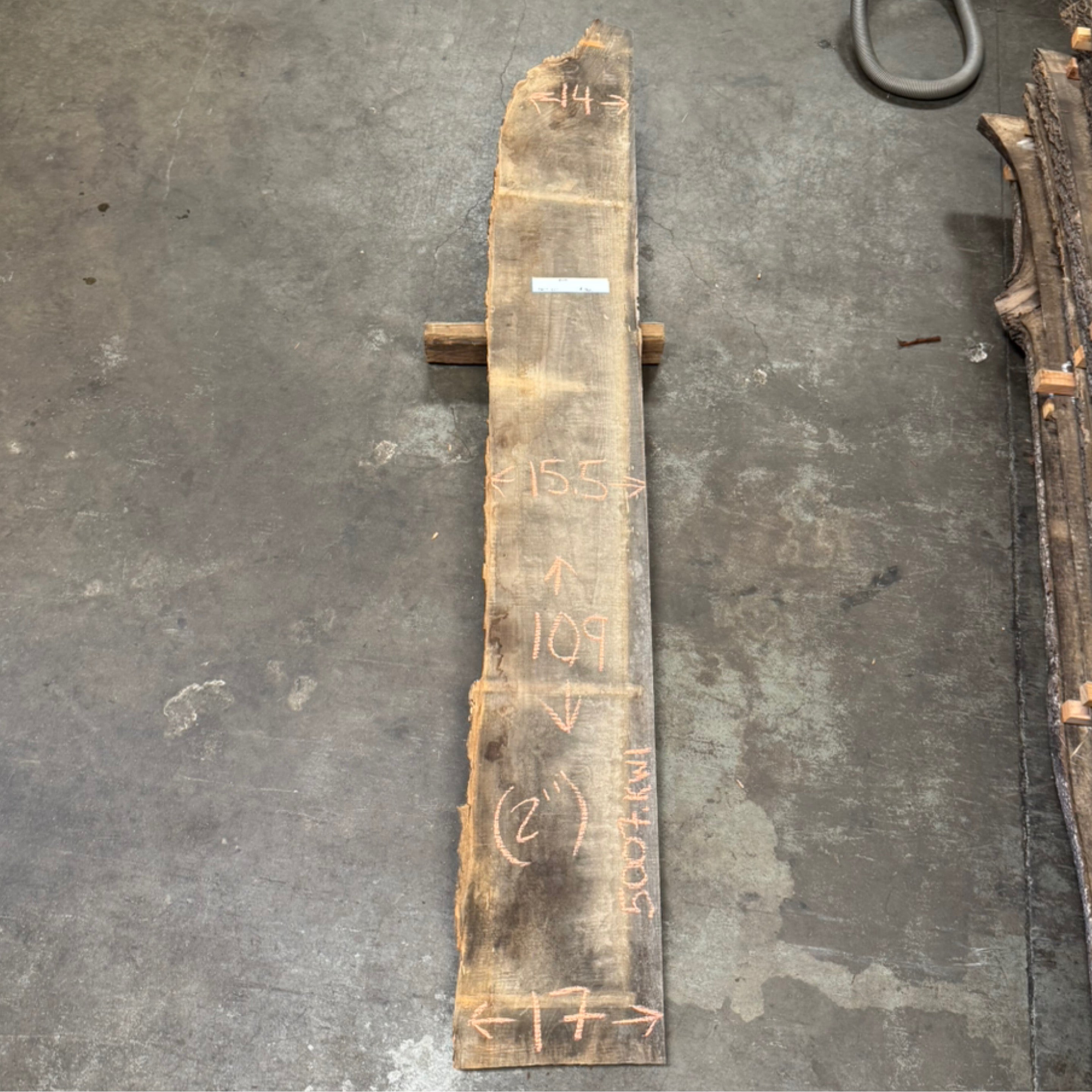 Ash slab from Peroba Reclaimed measuring 2" thick x 14"-15.5"-17" wide x 109" long