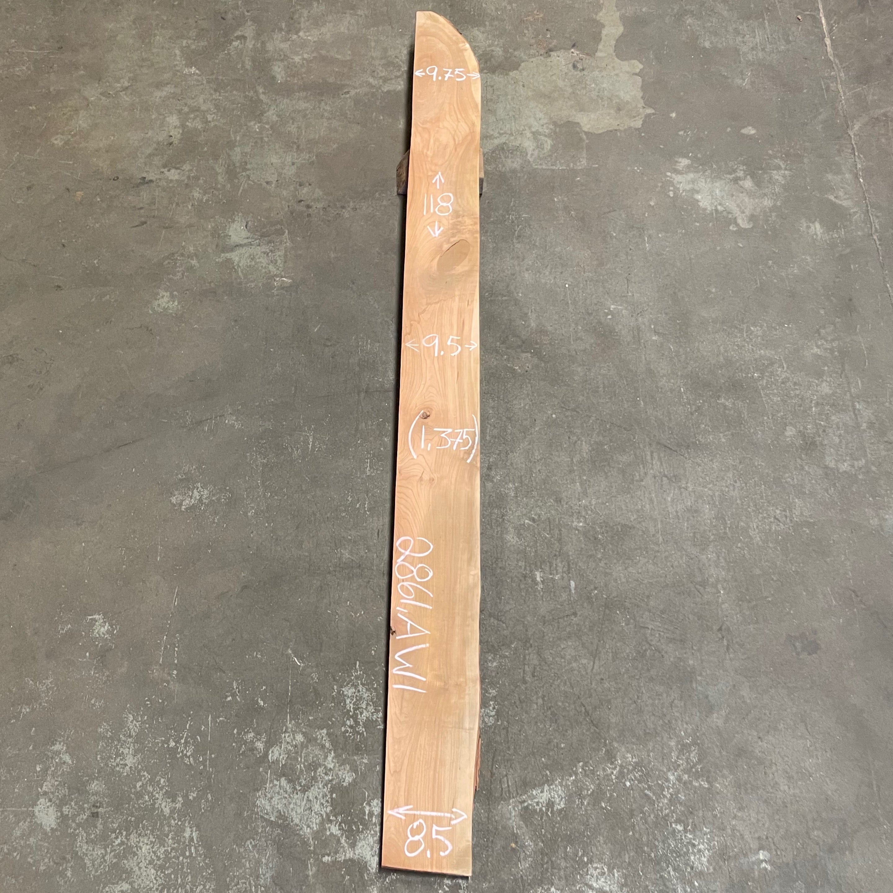Cherry slab from Peroba Reclaimed measuring 1.375" thick x 9.75"-9.5"-8.5" wide x 118" long