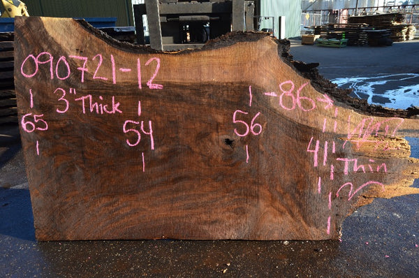 Black Walnut slab from Goby Walnut measuring 3" thick x 65"-54"-56"-41" wide x 86" long