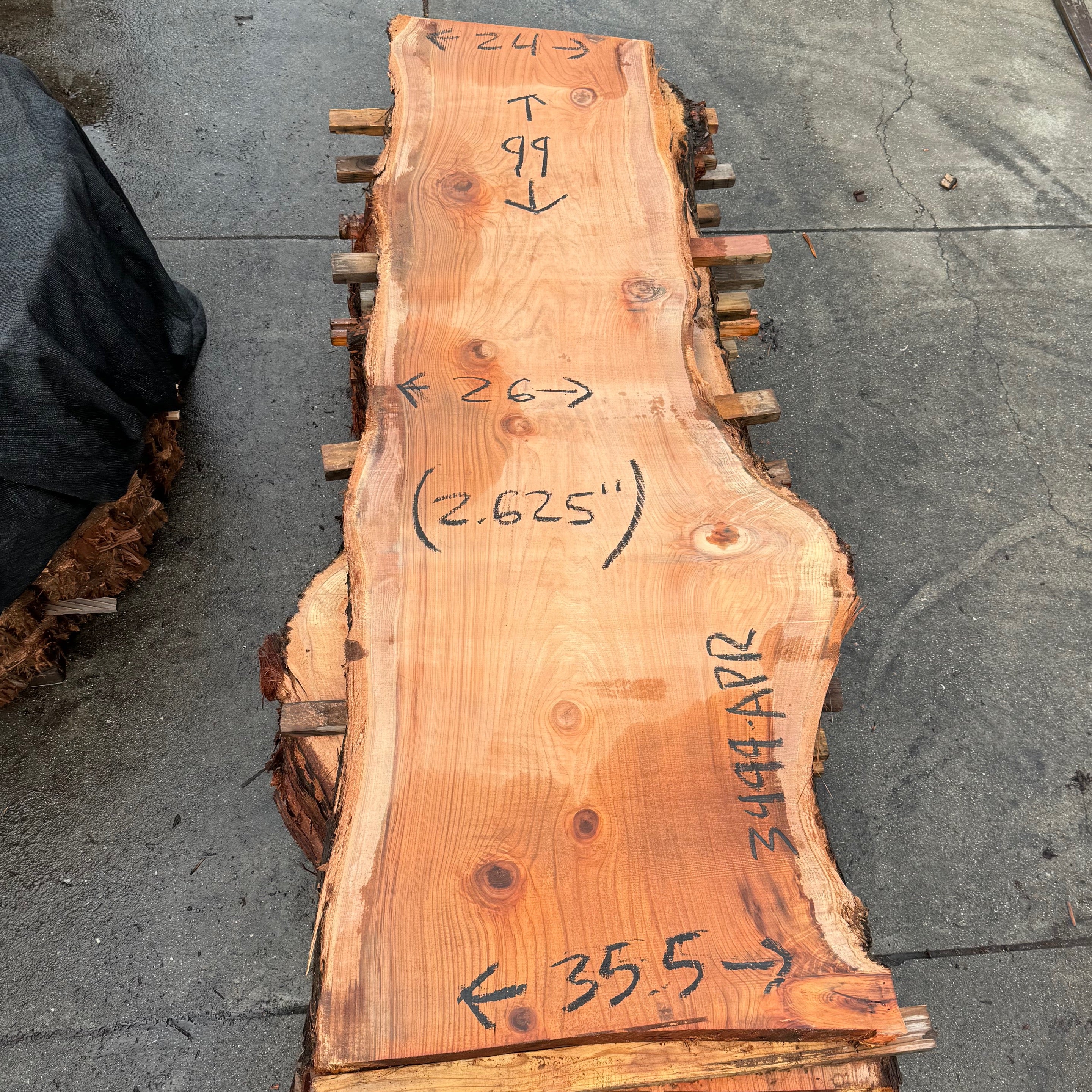 Redwood slab from Peroba Reclaimed measuring 2.625" thick x 24"-26"-35.5" wide x 99" long