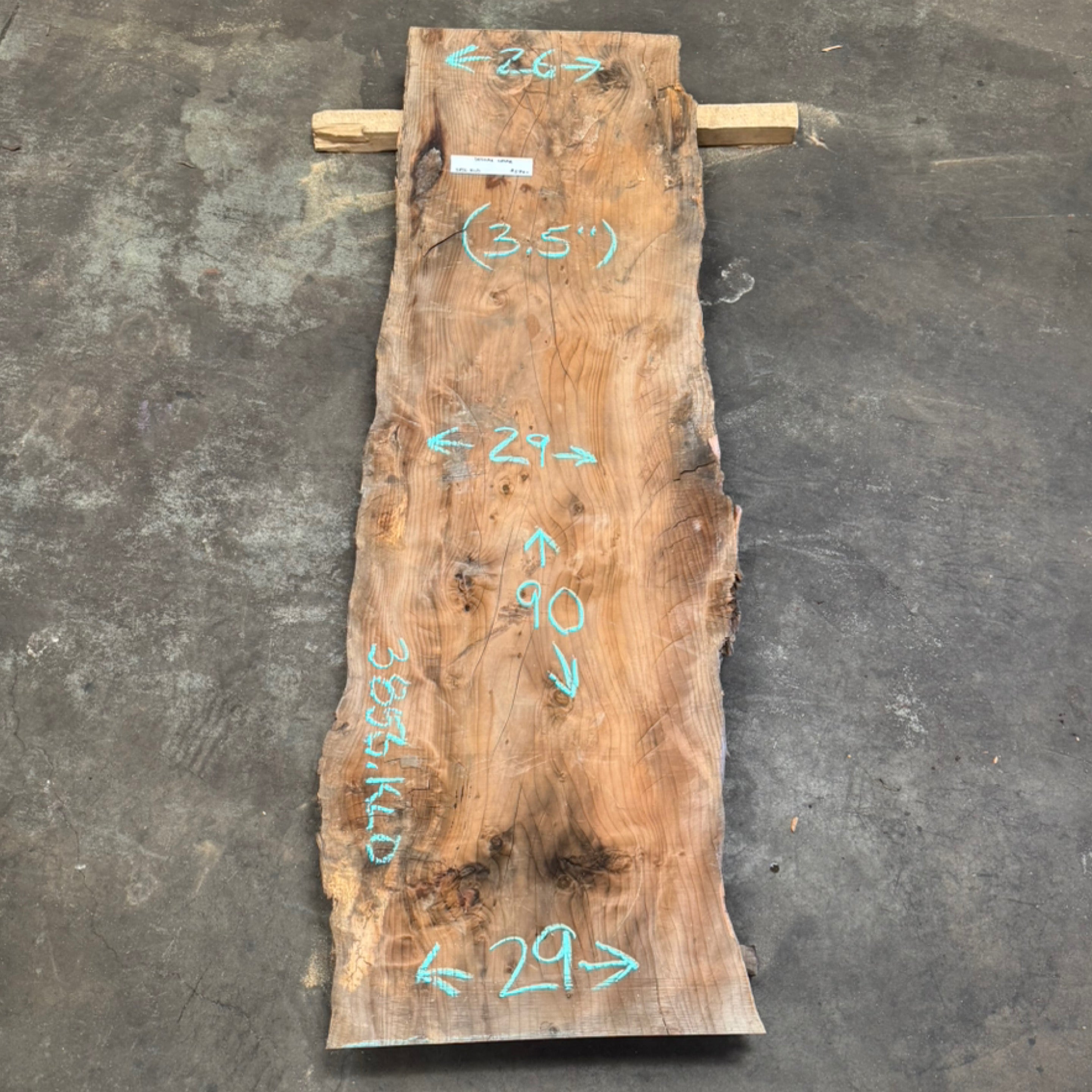 Cedar slab from Peroba Reclaimed measuring 3.5" thick x 26"-29"-29" wide x 90" long