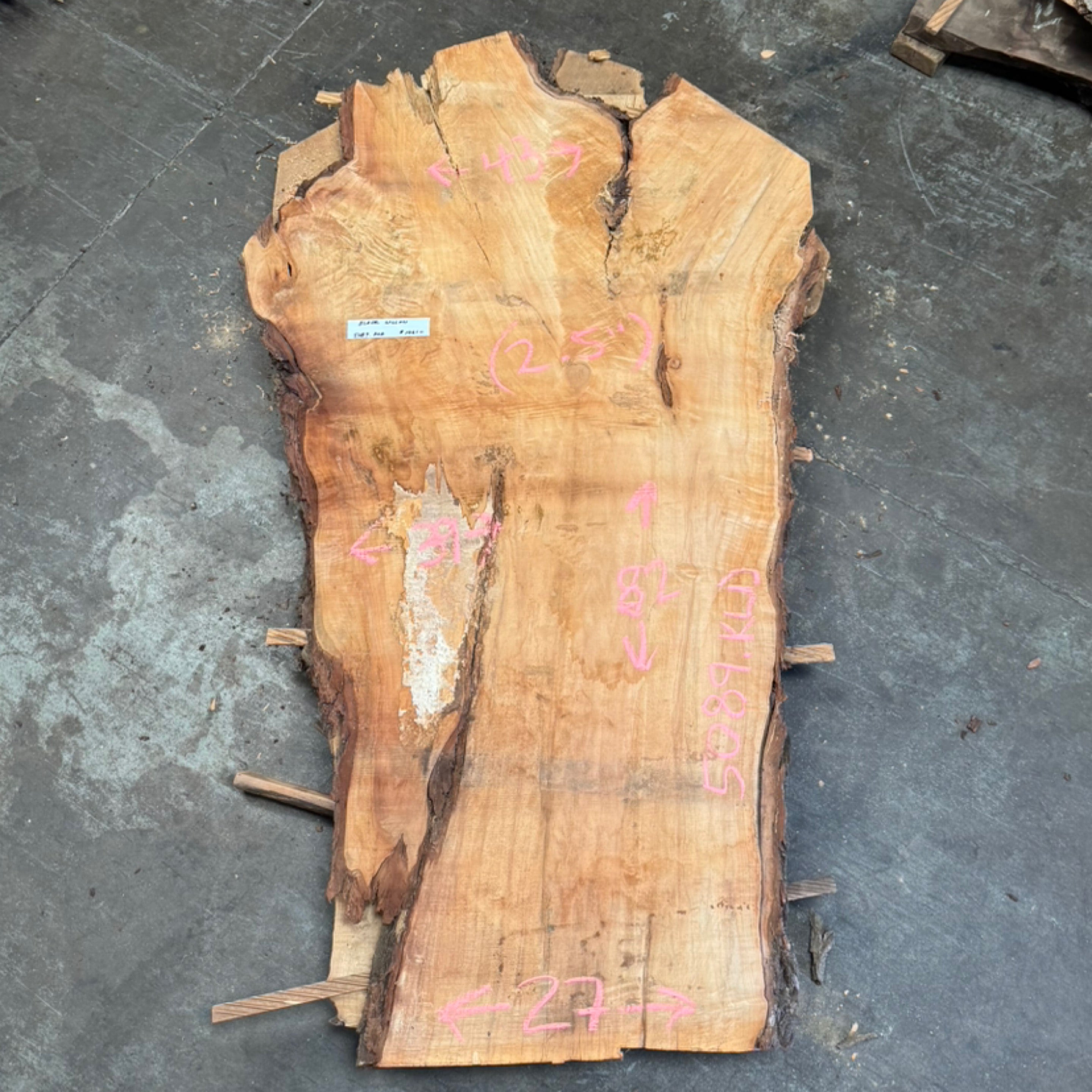 Silver Maple slab from Goby Walnut measuring 2" thick x 37"-40"-27"-25"-28"-25" wide x 97" long