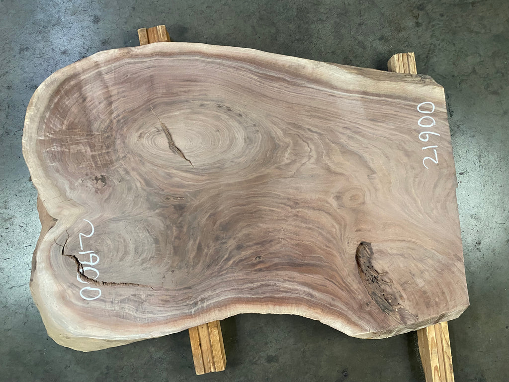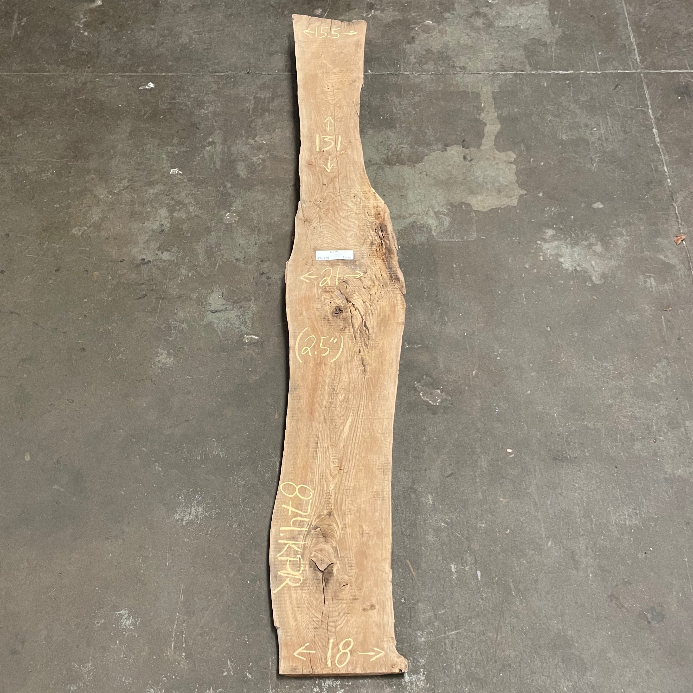 Elm slab from Peroba Reclaimed measuring 2.5" thick x 15.5"-21"-18" wide x 131" long