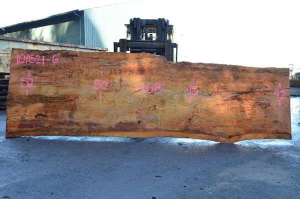 Fir slab from Goby Walnut measuring 2.75" thick x 52"-50"-45"-42" wide x 168" long