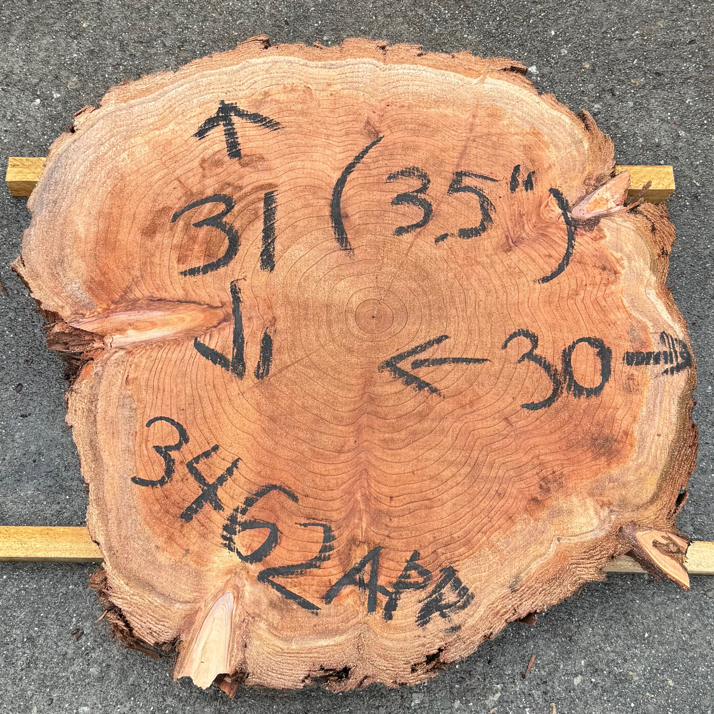 Redwood slab from Peroba Reclaimed measuring 3.5" thick x 30" wide x 31" long