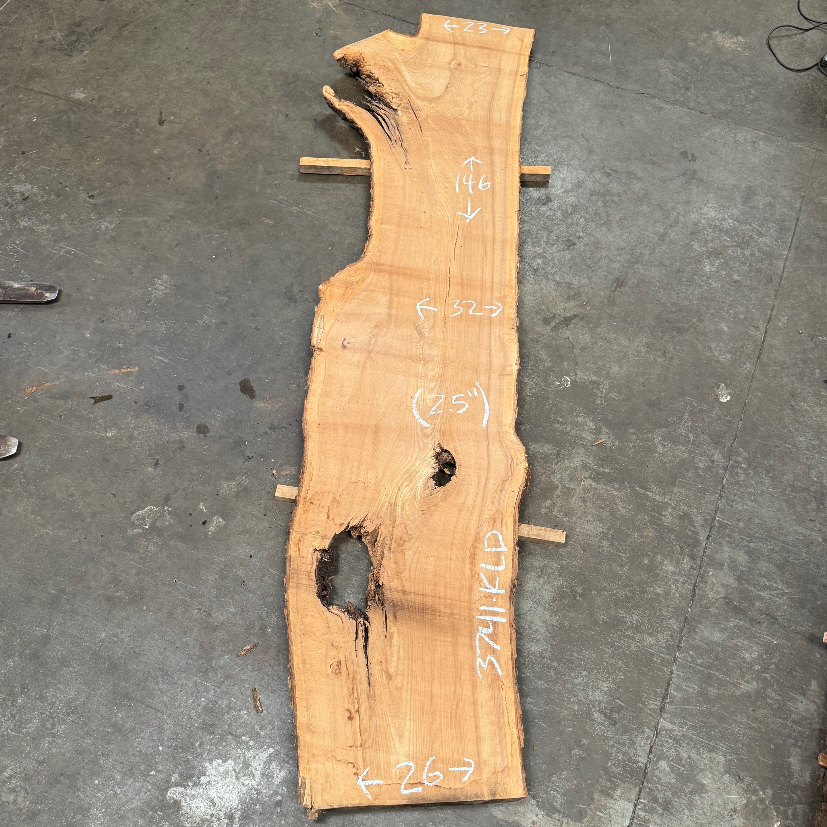 Elm slab from Peroba Reclaimed measuring 2.5" thick x 23"-32"-26" wide x 146" long