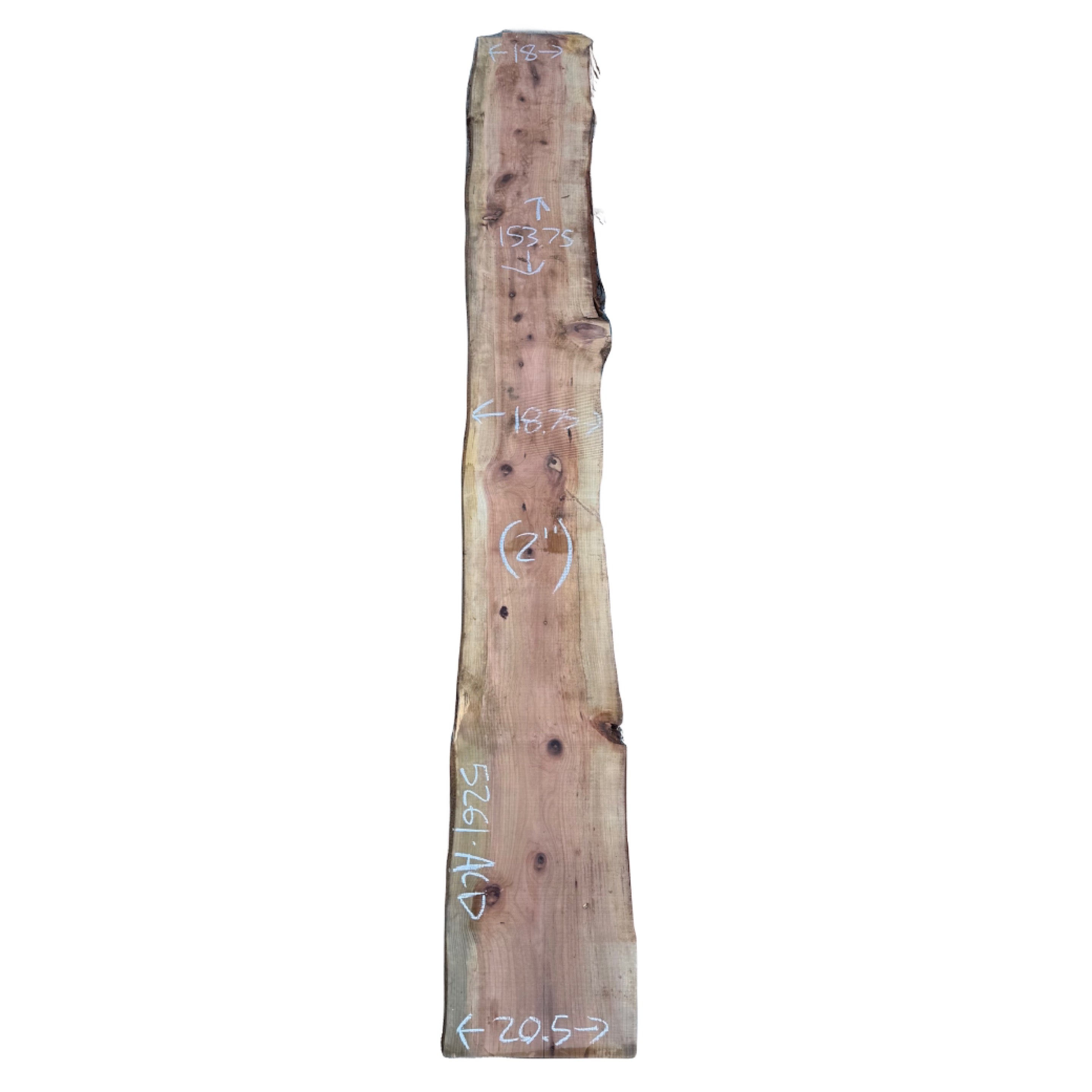 Redwood slab from Peroba Reclaimed measuring 2" thick x 18"-18.75"-20.5" wide x 153.75" long