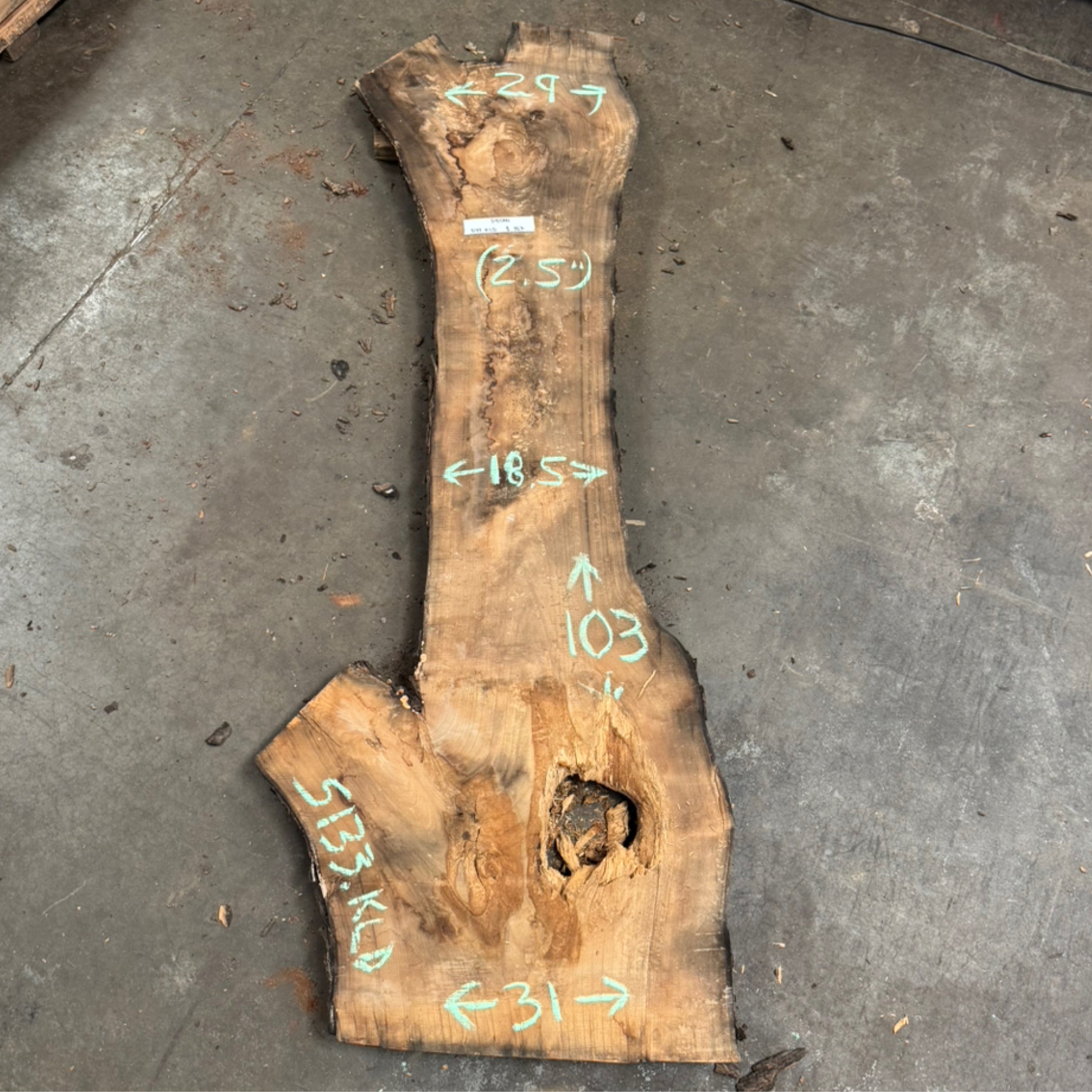 Buckeye slab from GL Veneer measuring 3" thick x 85"-96" wide x 85"-96" long