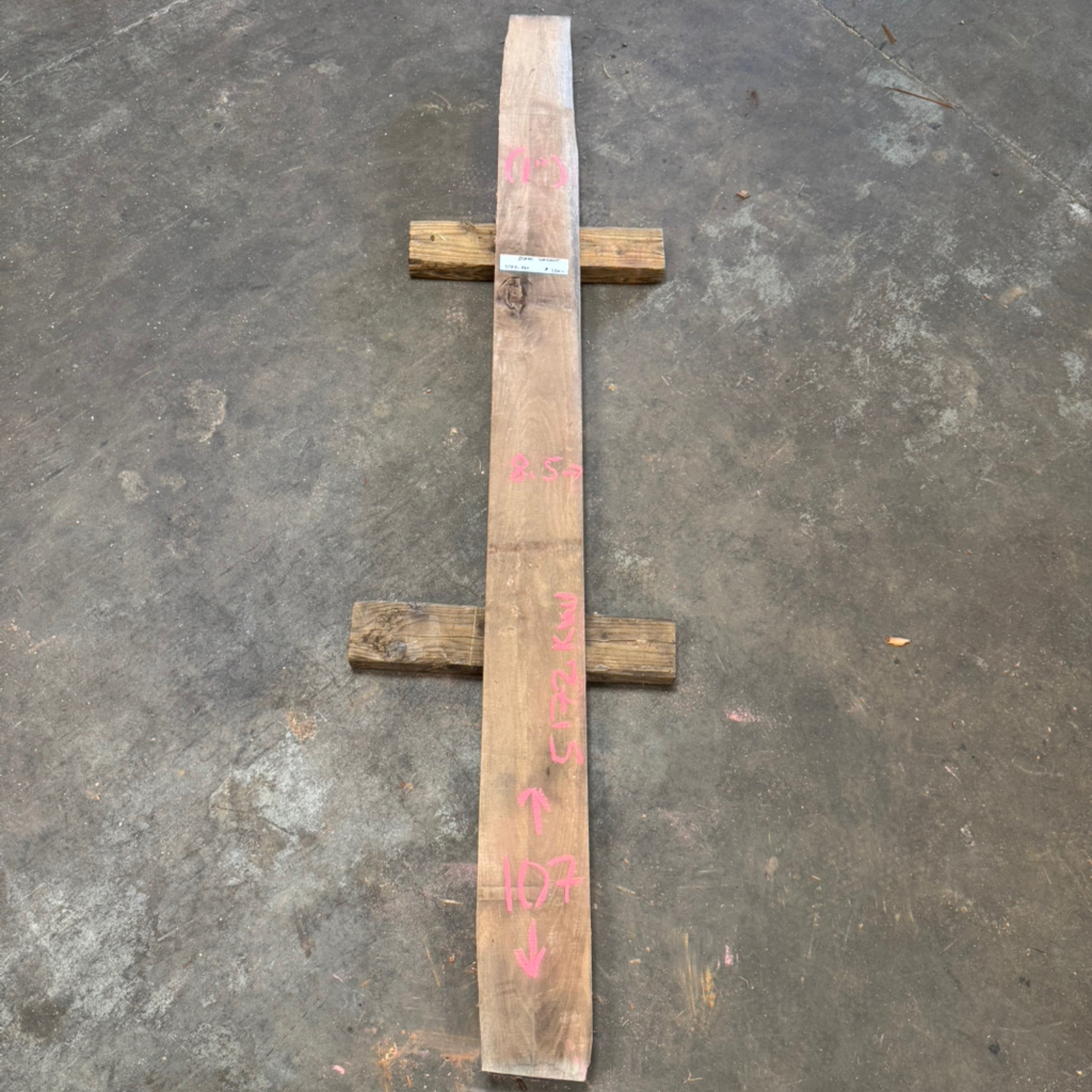Black Walnut slab from Peroba Reclaimed measuring 1" thick x 8.5" wide x 107" long