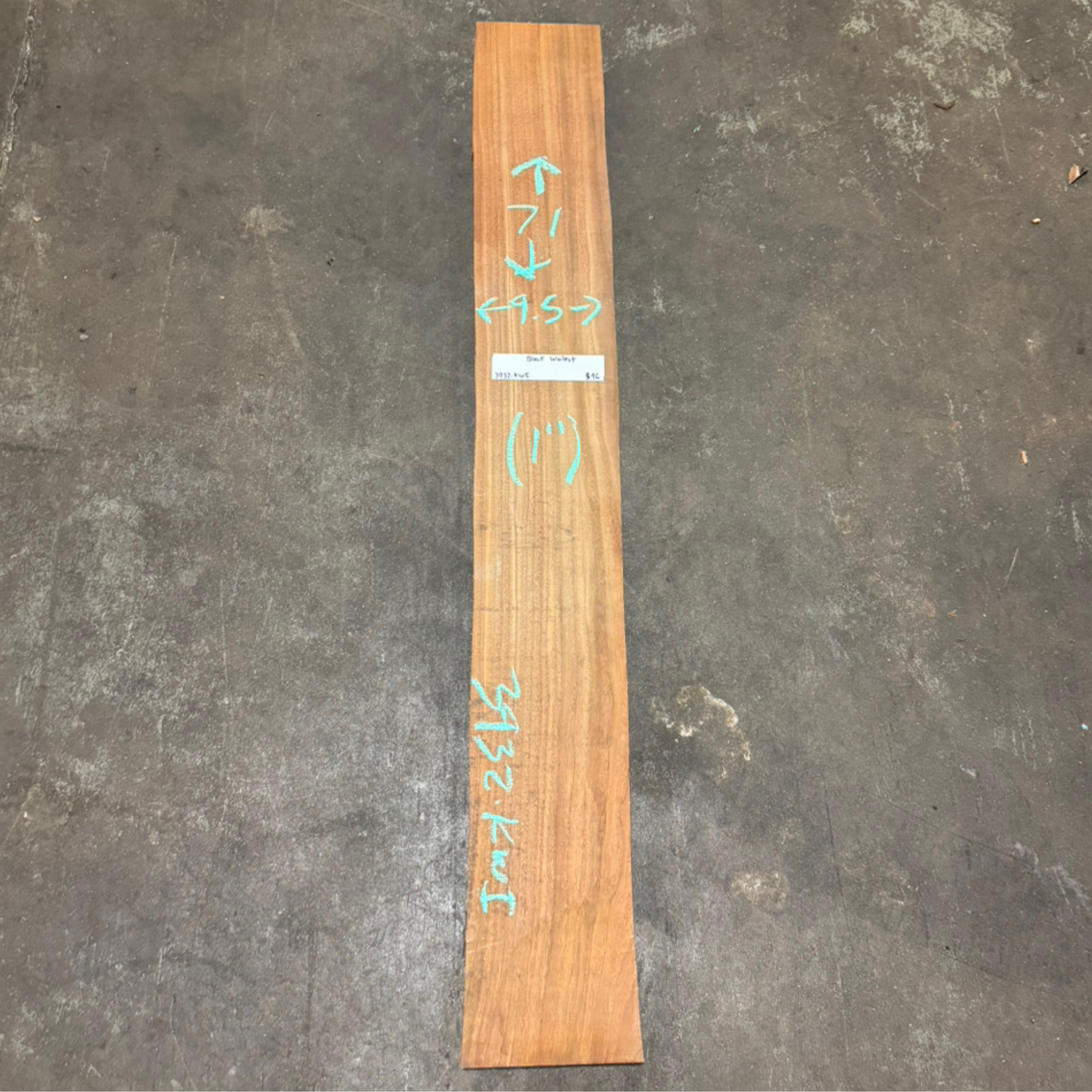 Black Walnut slab from Peroba Reclaimed measuring 1" thick x 9.5" wide x 71" long