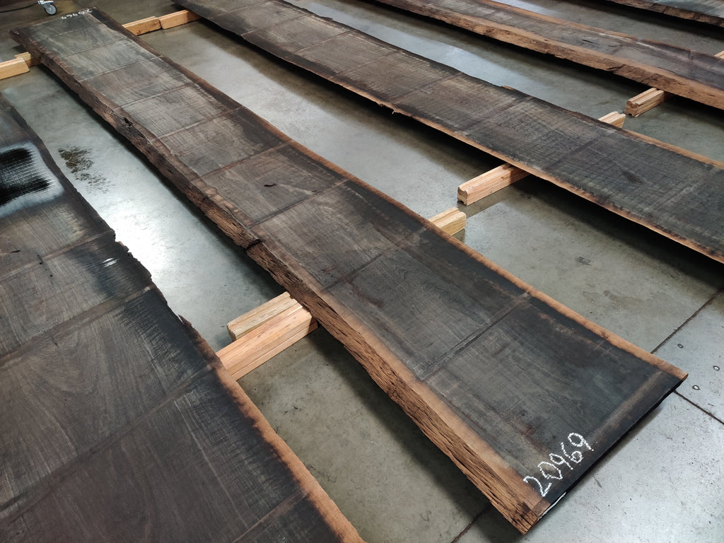 Black Walnut slab from Peroba Reclaimed measuring 1" thick x 9.75" wide x 75" long