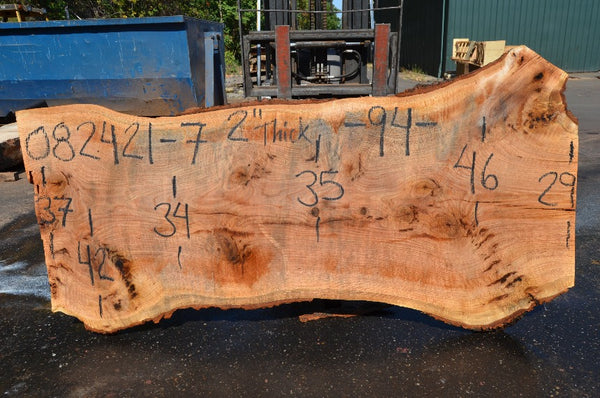 Red Oak slab from Goby Walnut measuring 2" thick x 37"-42"-34"-35"-46"-29" wide x 94" long