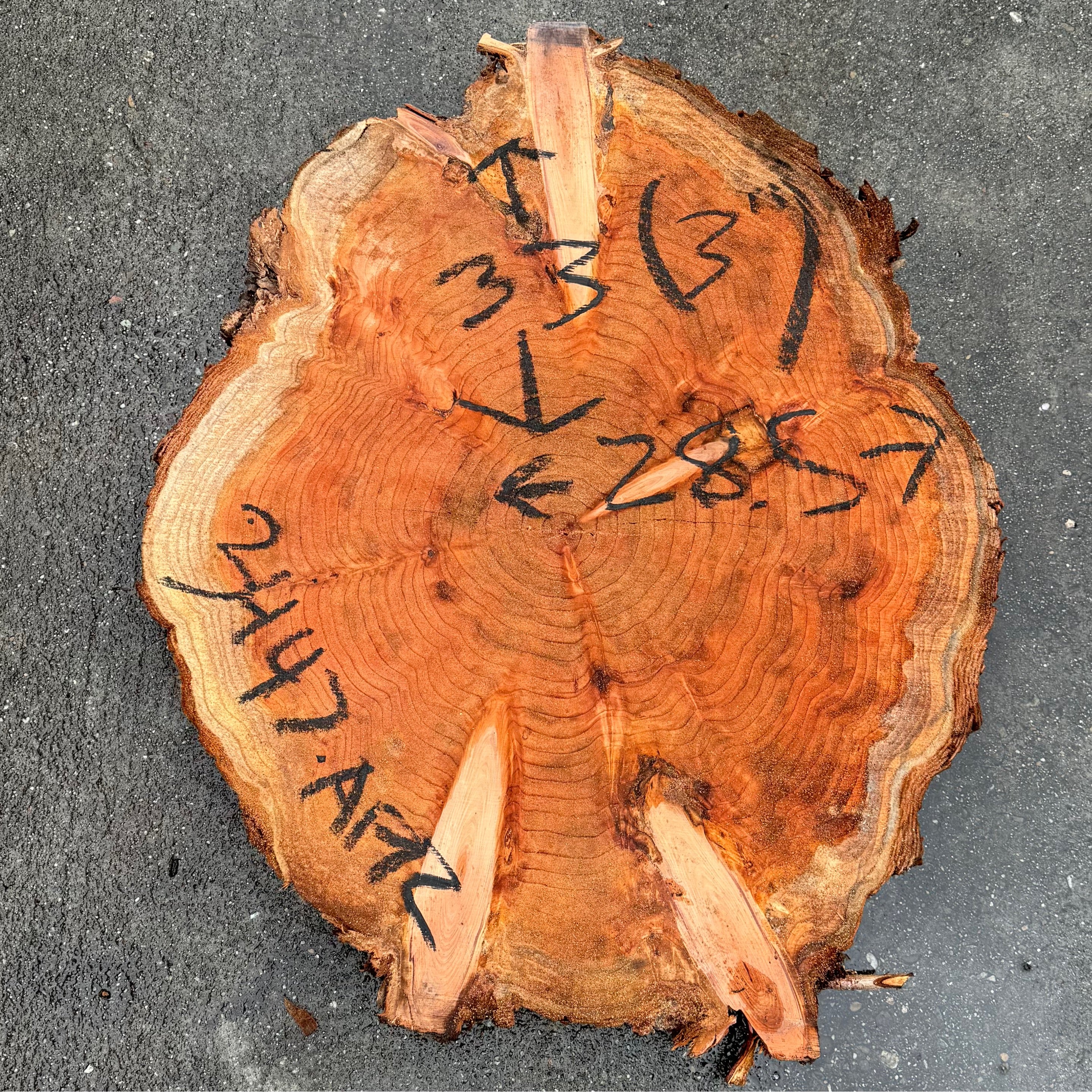 Redwood slab from Peroba Reclaimed measuring 3" thick x 28.5" wide x 33" long