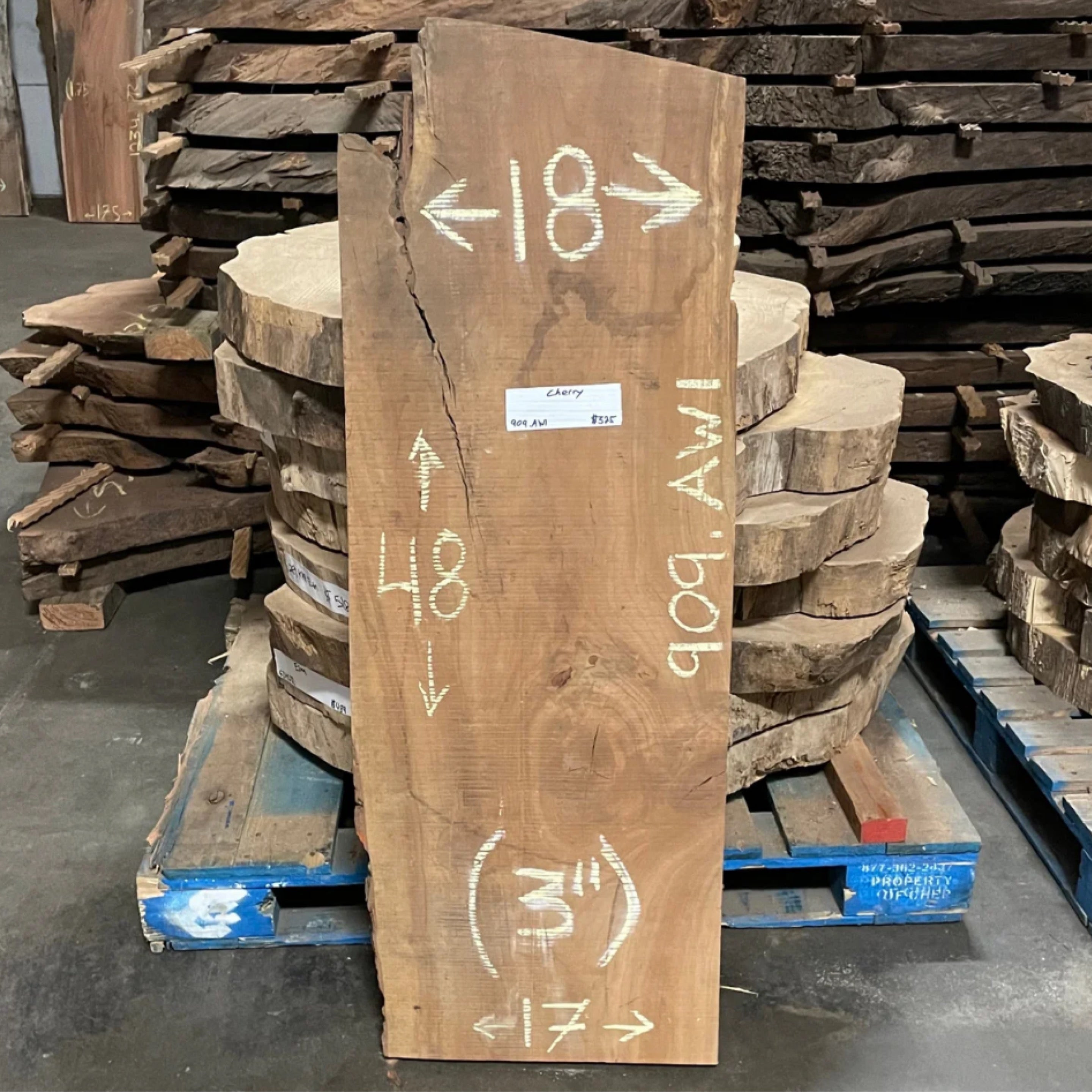 Cherry slab from Peroba Reclaimed measuring 3" thick x 17"-18" wide x 48" long