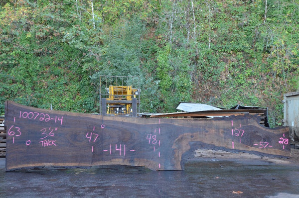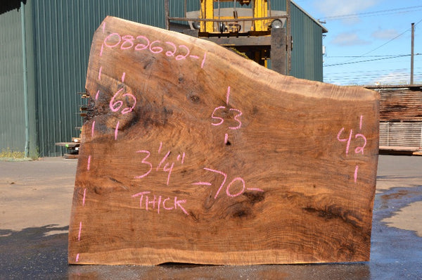 Black Walnut slab from Goby Walnut measuring 3.25" thick x 62"-53"-42" wide x 70" long