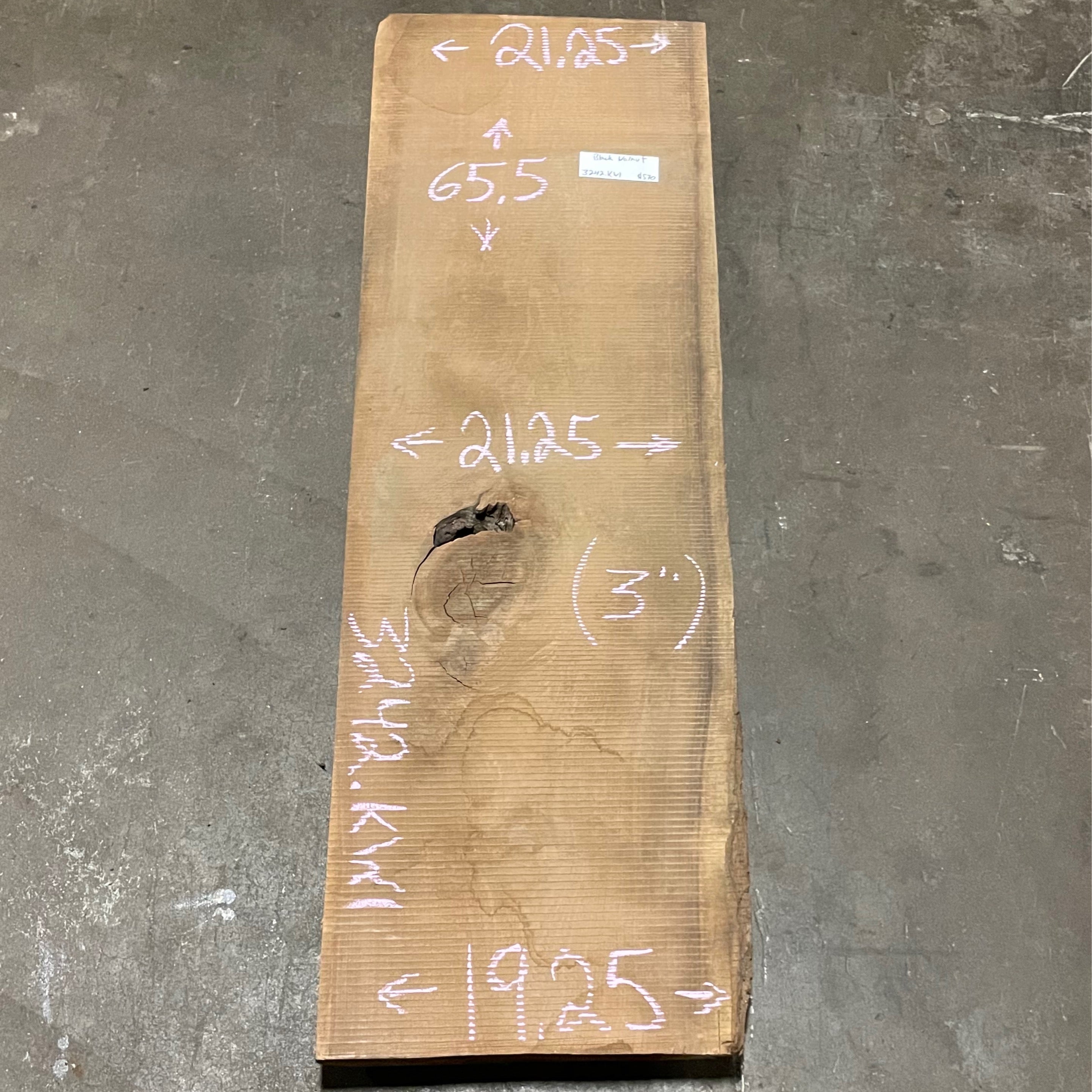 Black Walnut slab from Peroba Reclaimed measuring 3" thick x 21.25"-21.35"-19.25" wide x 65.5" long