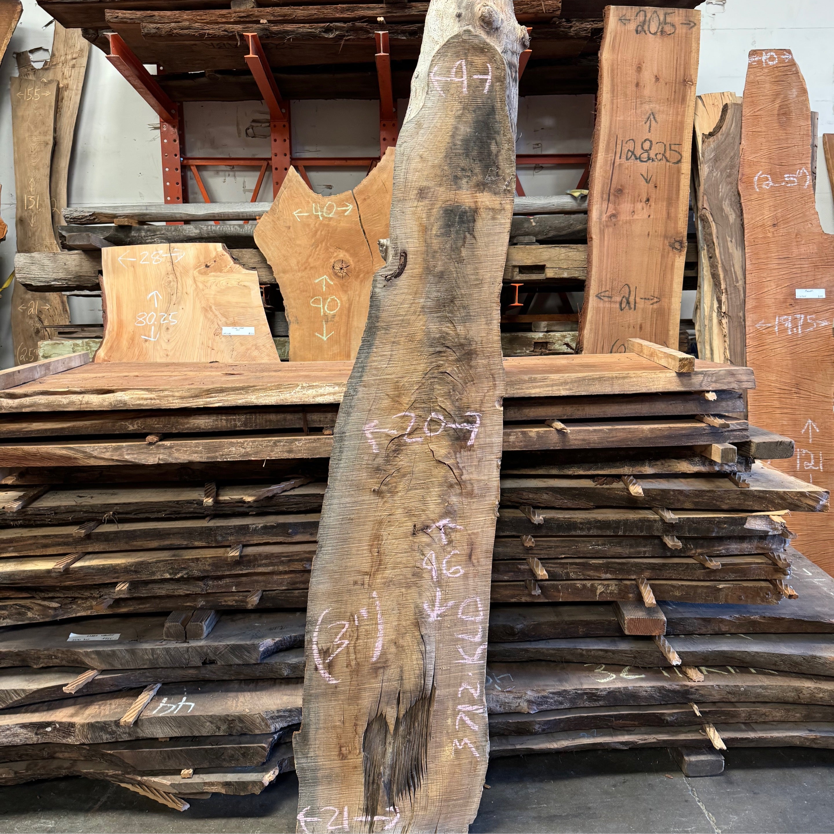 Sycamore slab from Peroba Reclaimed measuring 2.5" thick x 27"-21.5"-33" wide x 89" long