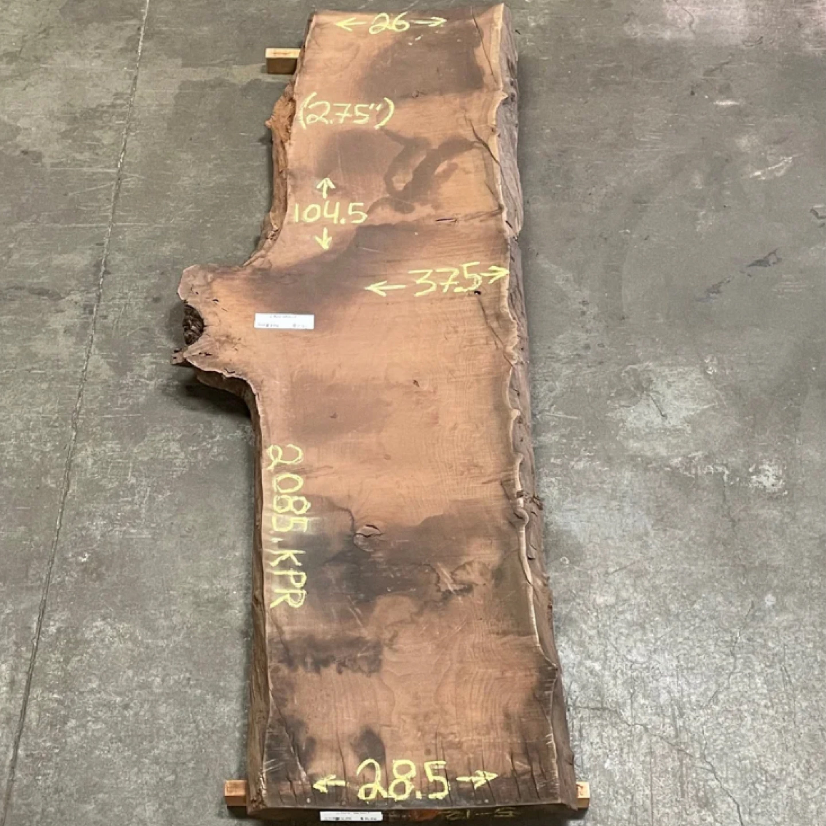 Claro Walnut slab from Peroba Reclaimed measuring 2.75" thick x 26"-37.5"-28.5" wide x 104.5" long