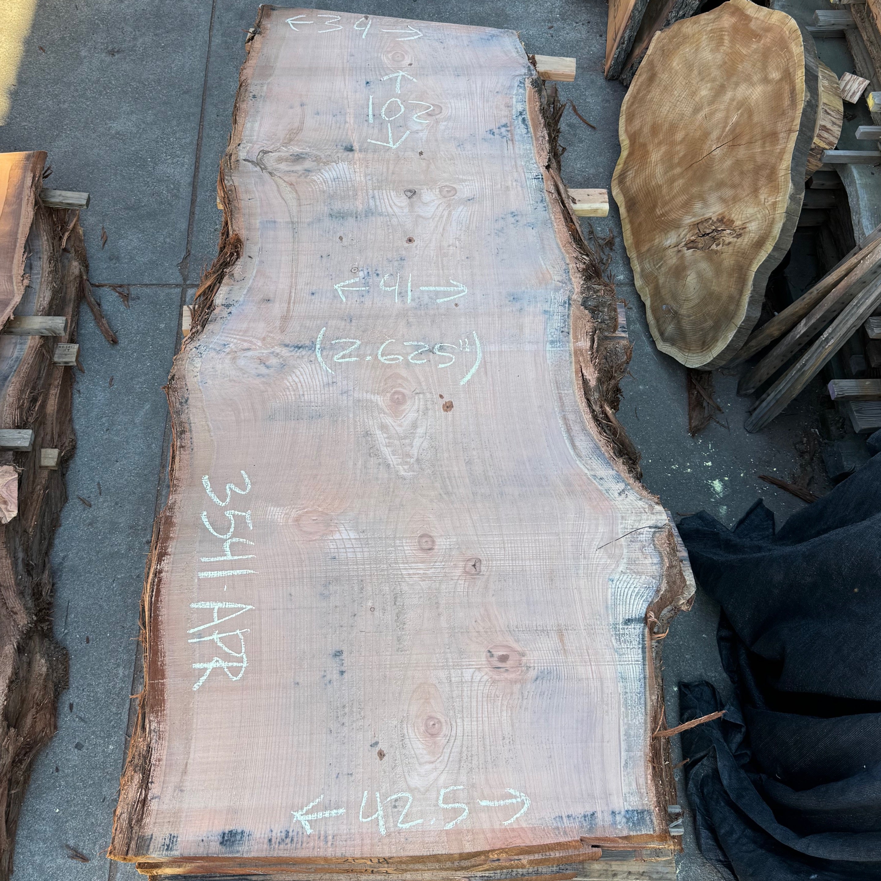 Redwood slab from Peroba Reclaimed measuring 2.625" thick x 34"-41"-42.5" wide x 102" long