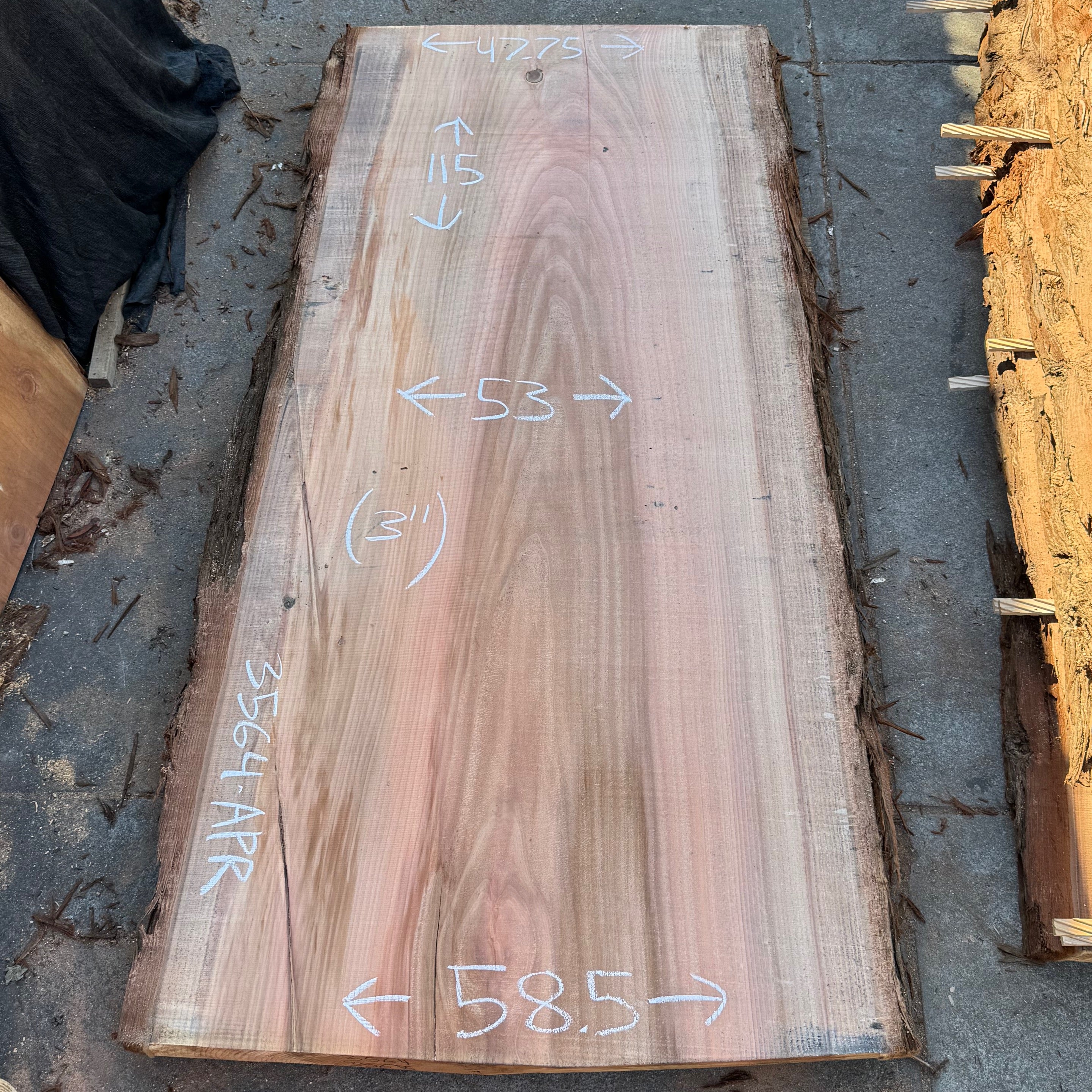 Redwood slab from Peroba Reclaimed measuring 3" thick x 47.75"-53"-58.5" wide x 115" long