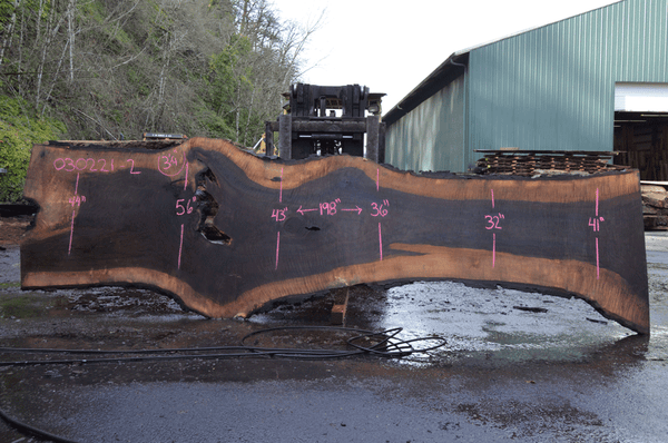 Black Walnut slab from Goby Walnut measuring 3.25" thick x 49"-56"-43"-36"-32"-41" wide x 198" long