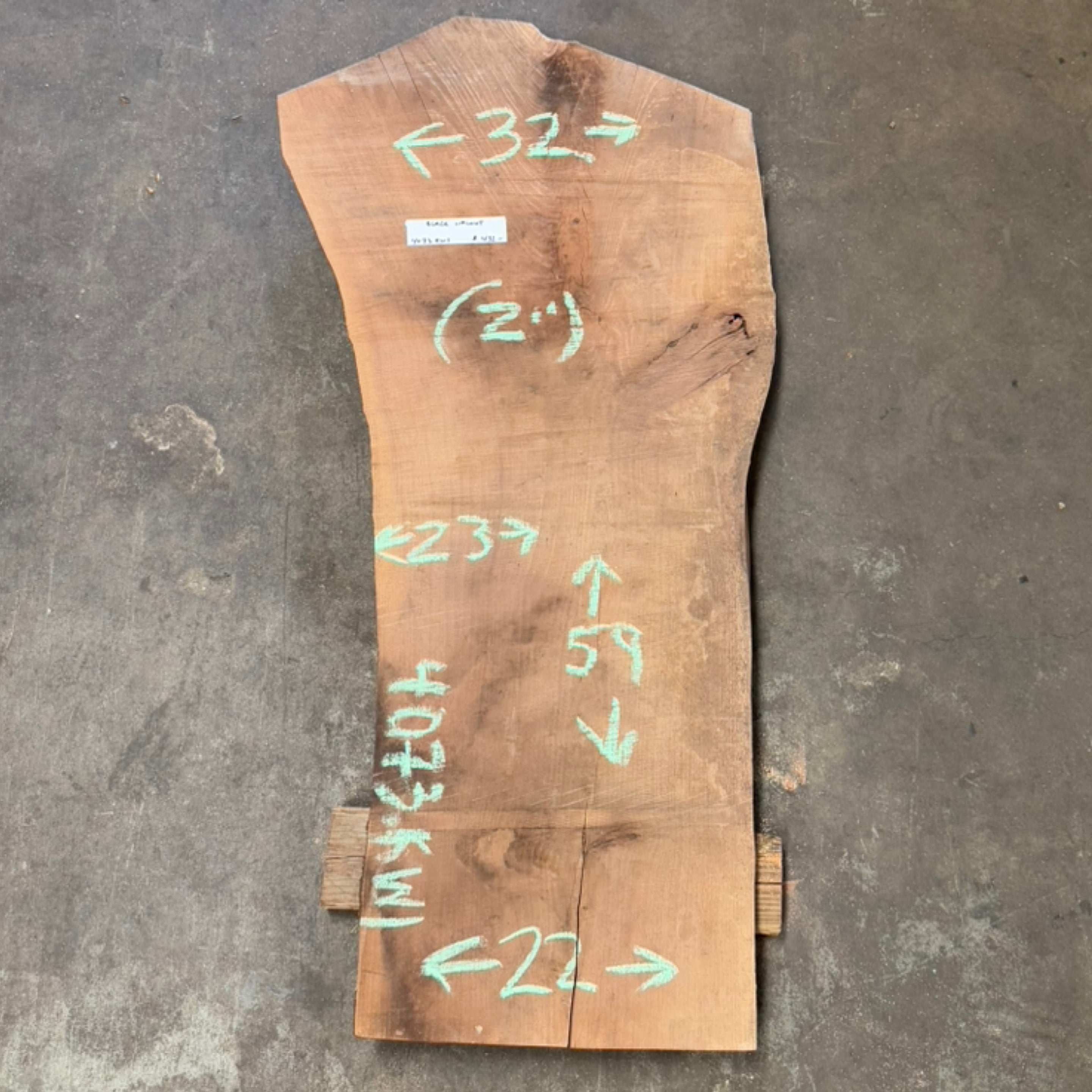 Black Walnut slab from Peroba Reclaimed measuring 2" thick x 32"-23"-22" wide x 59" long