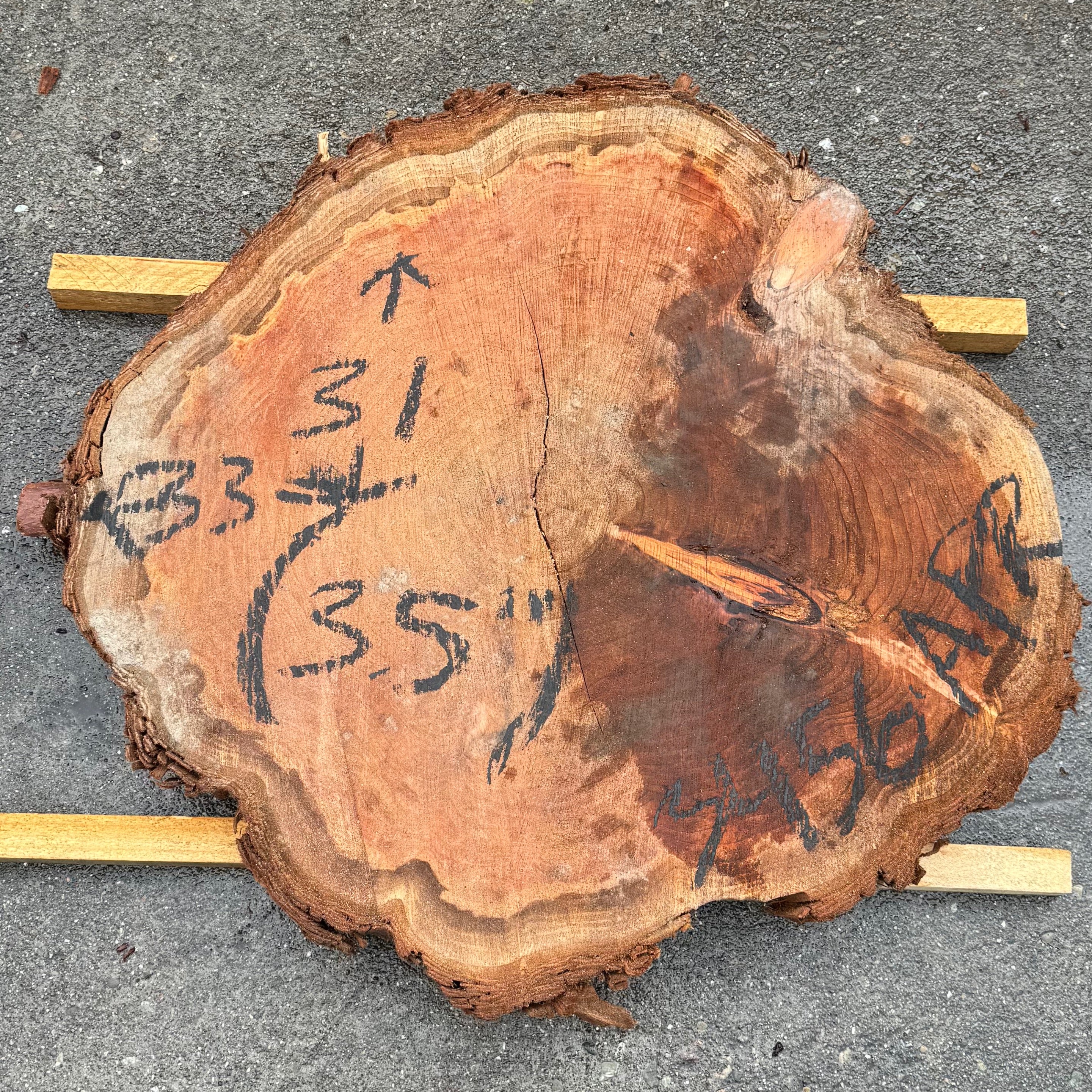 Redwood slab from Peroba Reclaimed measuring 3.5" thick x 31" wide x 33" long
