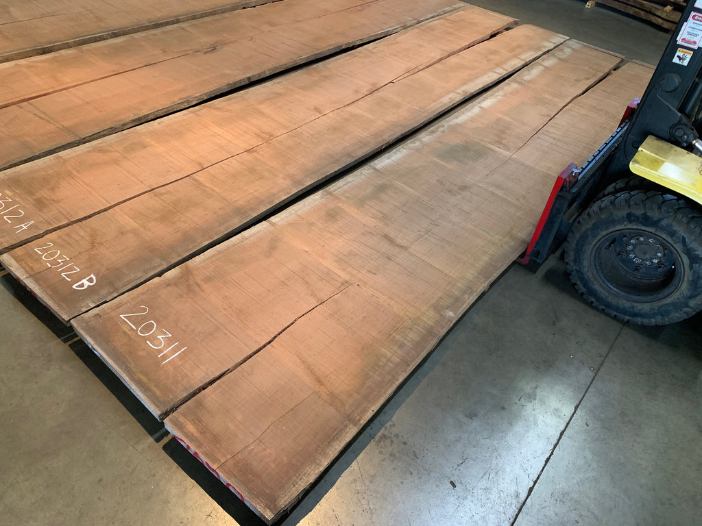 Bubinga slab from CS Woods measuring 2" thick x 49"-52" wide x 244" long