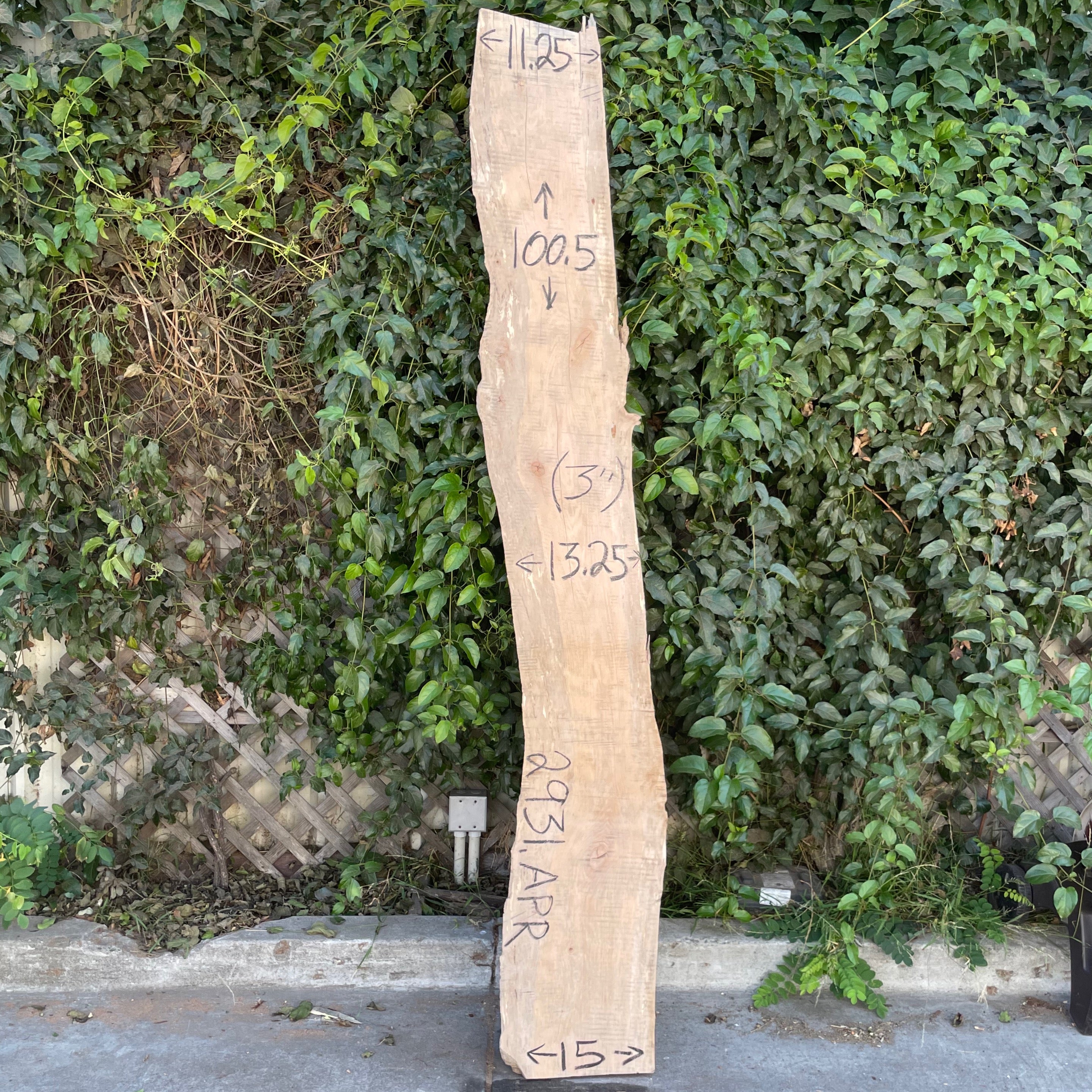 Sycamore slab from Peroba Reclaimed measuring 3" thick x 11.25"-13.25"-15" wide x 100.5" long