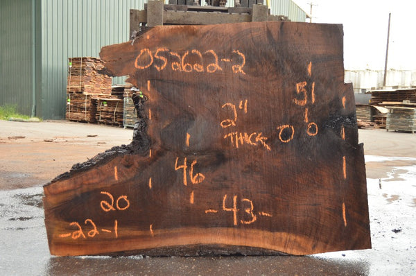 Black Walnut slab from Goby Walnut measuring 2" thick x 20"-46"-51" wide x 43" long