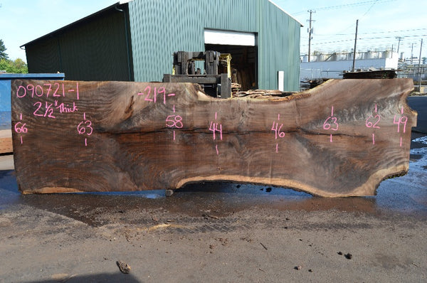 Black Walnut slab from Goby Walnut measuring 2.5" thick x 66"-63"-58"-44"-46"-63"-62"-49" wide x 219" long