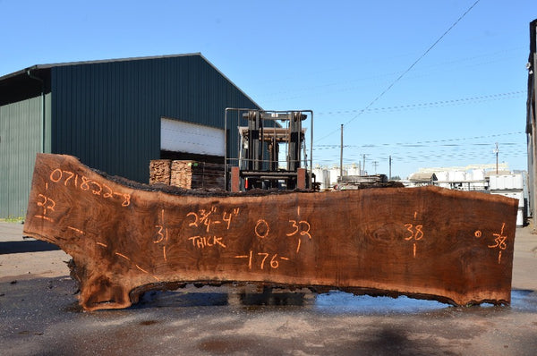 Black Walnut slab from Goby Walnut measuring 2.75"-4" thick x 22"-31"-32"-38"-38" wide x 176" long