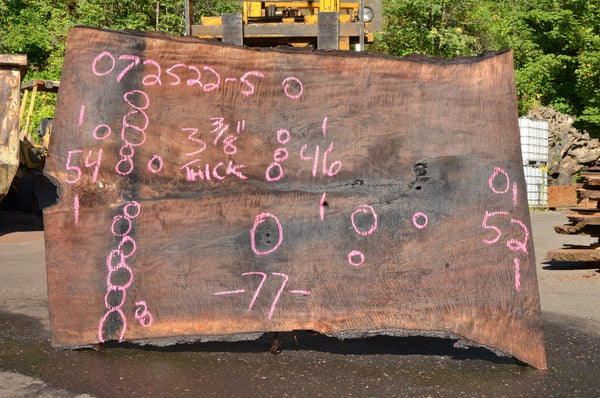Black Walnut slab from Goby Walnut measuring 3.375" thick x 54"-46"-52" wide x 77" long