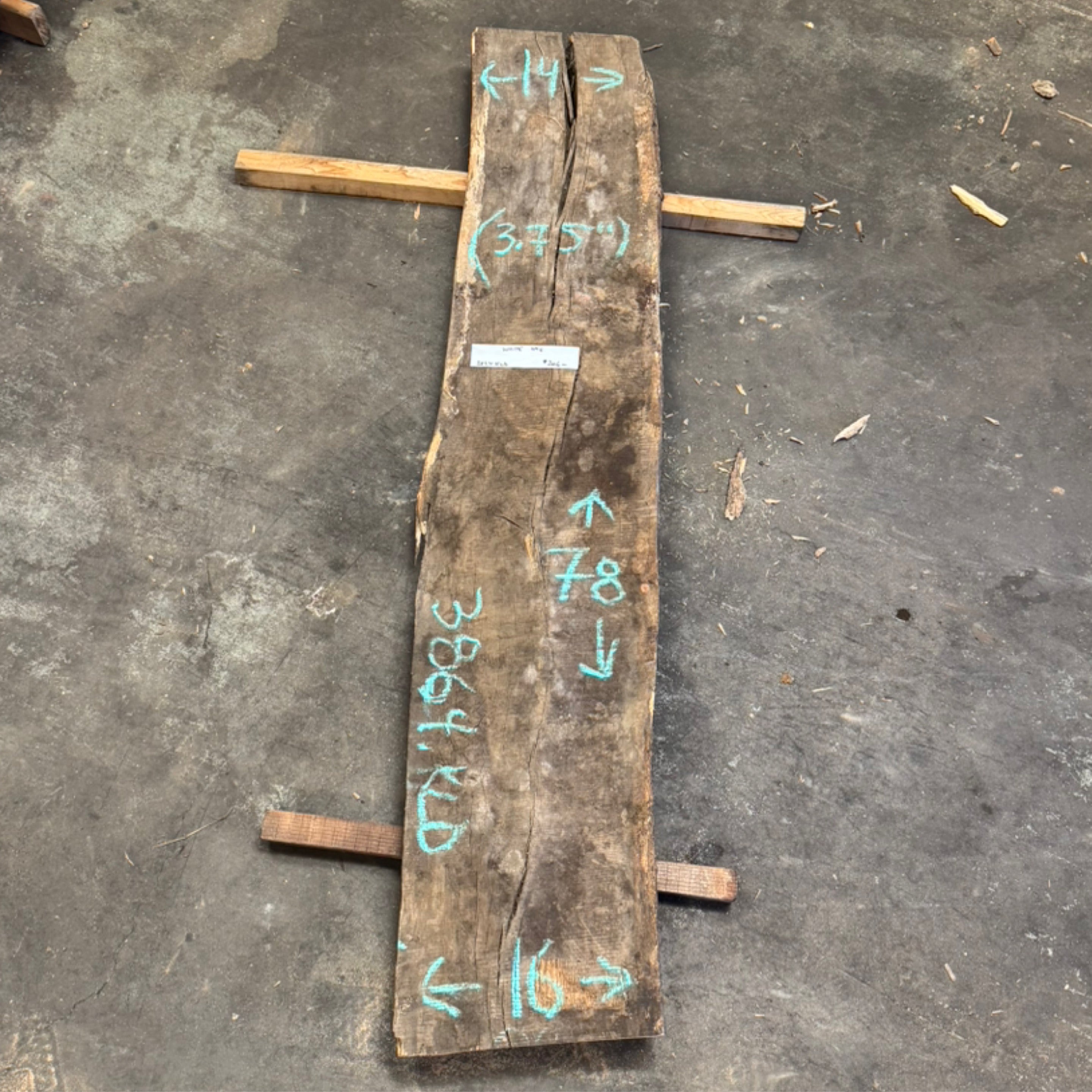 White Oak slab from Peroba Reclaimed measuring 3.75" thick x 14"-16" wide x 78" long