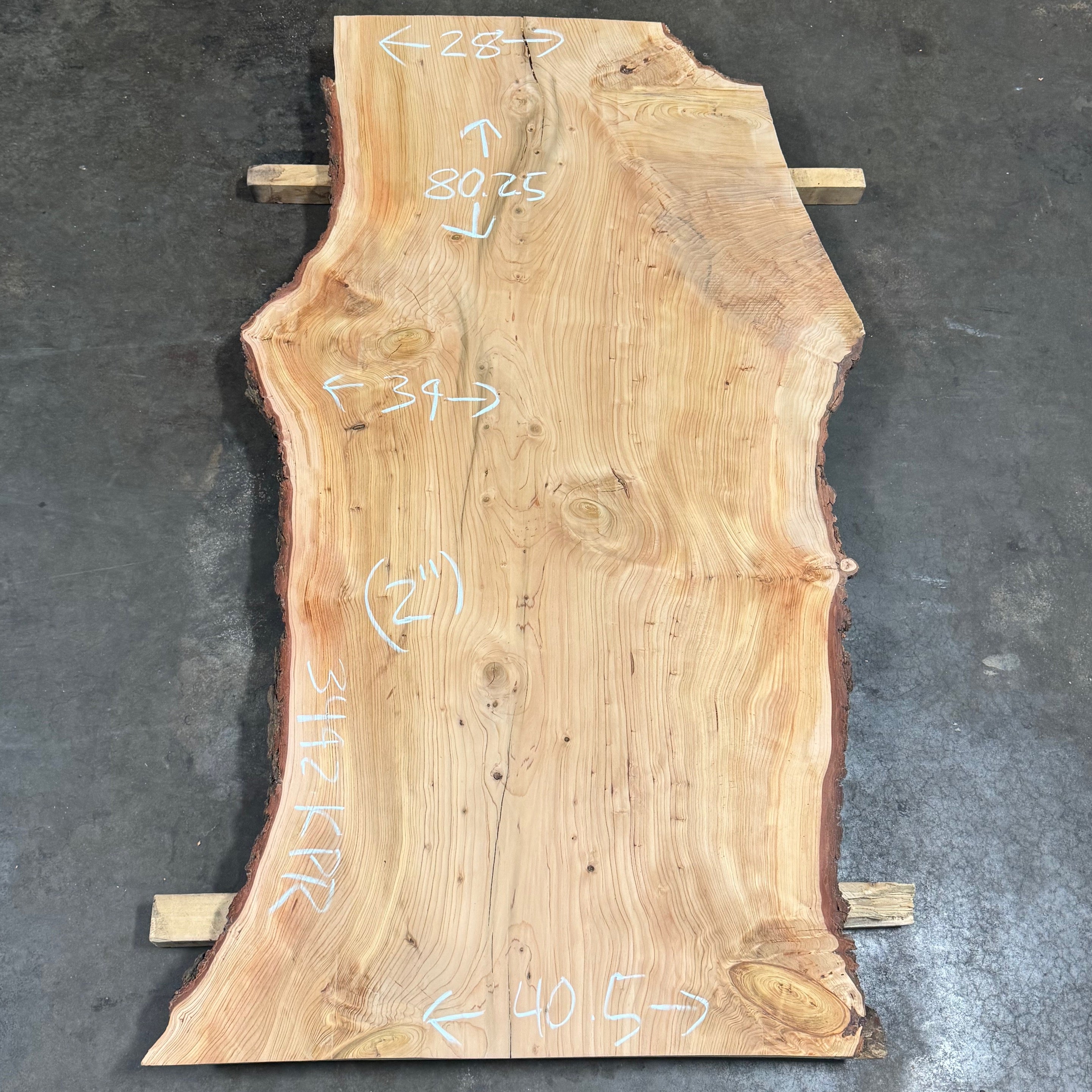Cedar slab from Peroba Reclaimed measuring 2" thick x 28"-39"-40.5" wide x 80.25" long