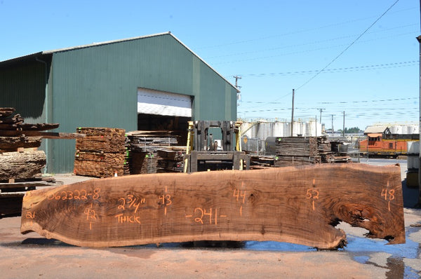 Black Walnut slab from Goby Walnut measuring 2.75" thick x 21"-42"-43"-44"-52"-48" wide x 241" long