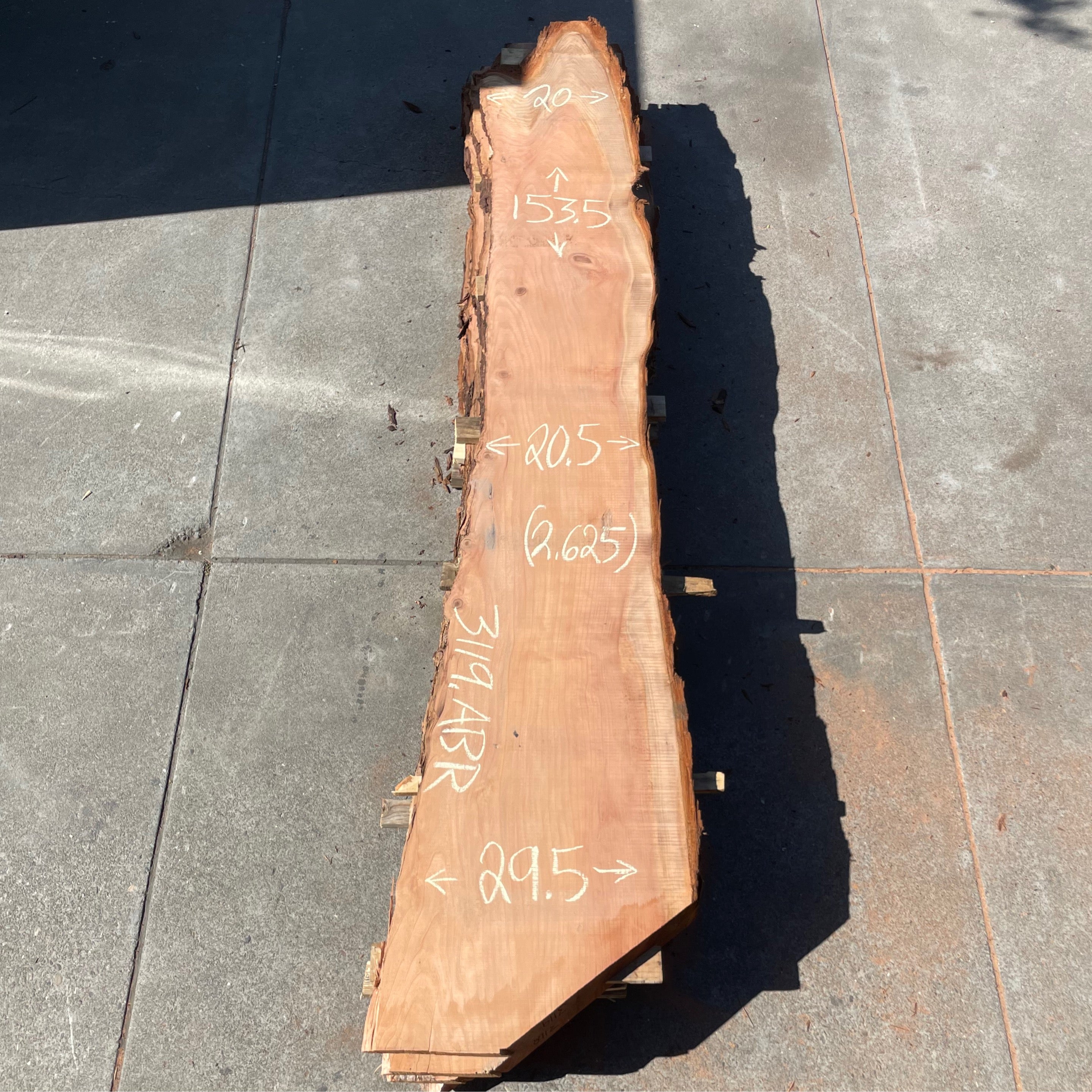 Redwood slab from Peroba Reclaimed measuring 2.625" thick x 20"-20.5"-29.5" wide x 153.5" long