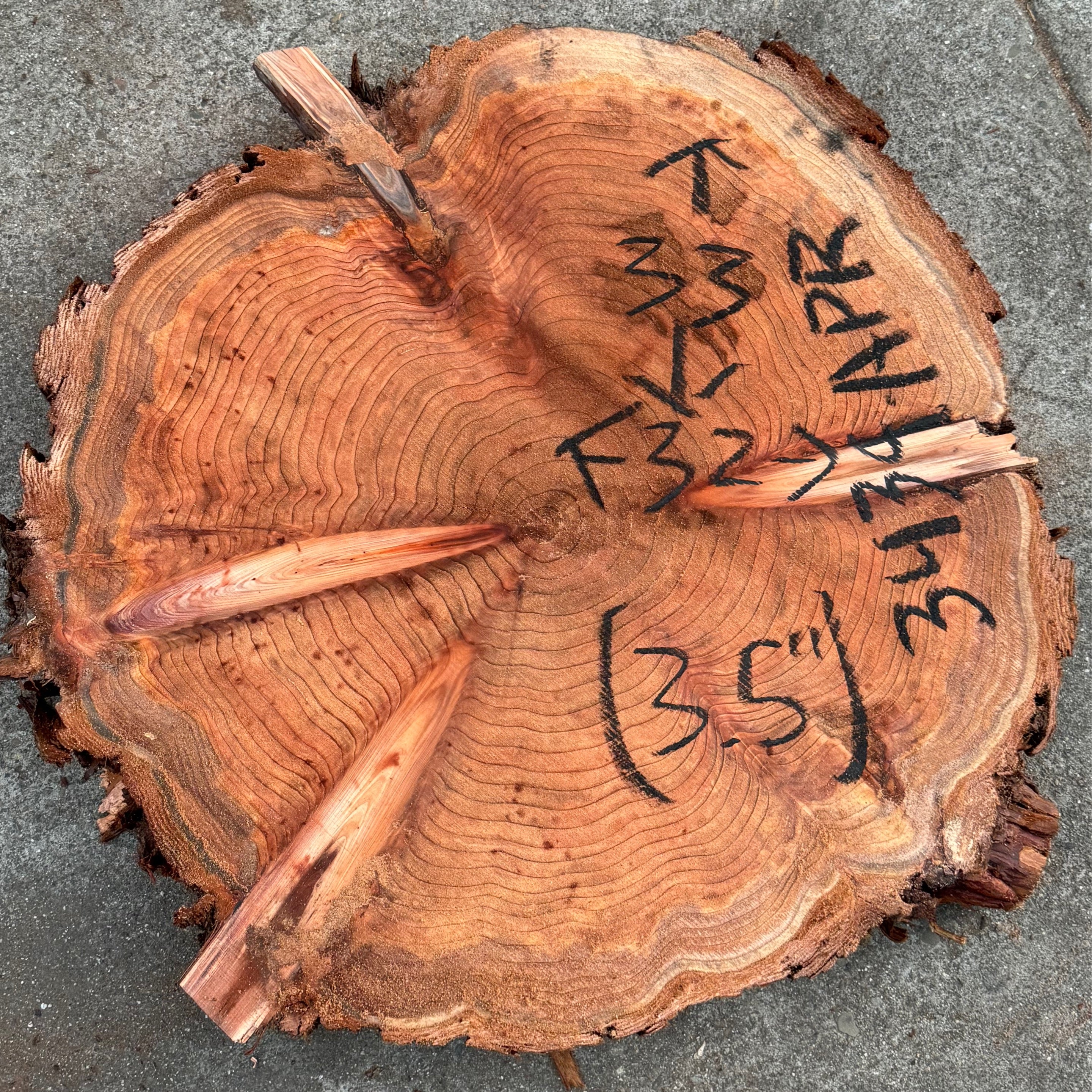 Redwood slab from Peroba Reclaimed measuring 3.5" thick x 32" wide x 33" long