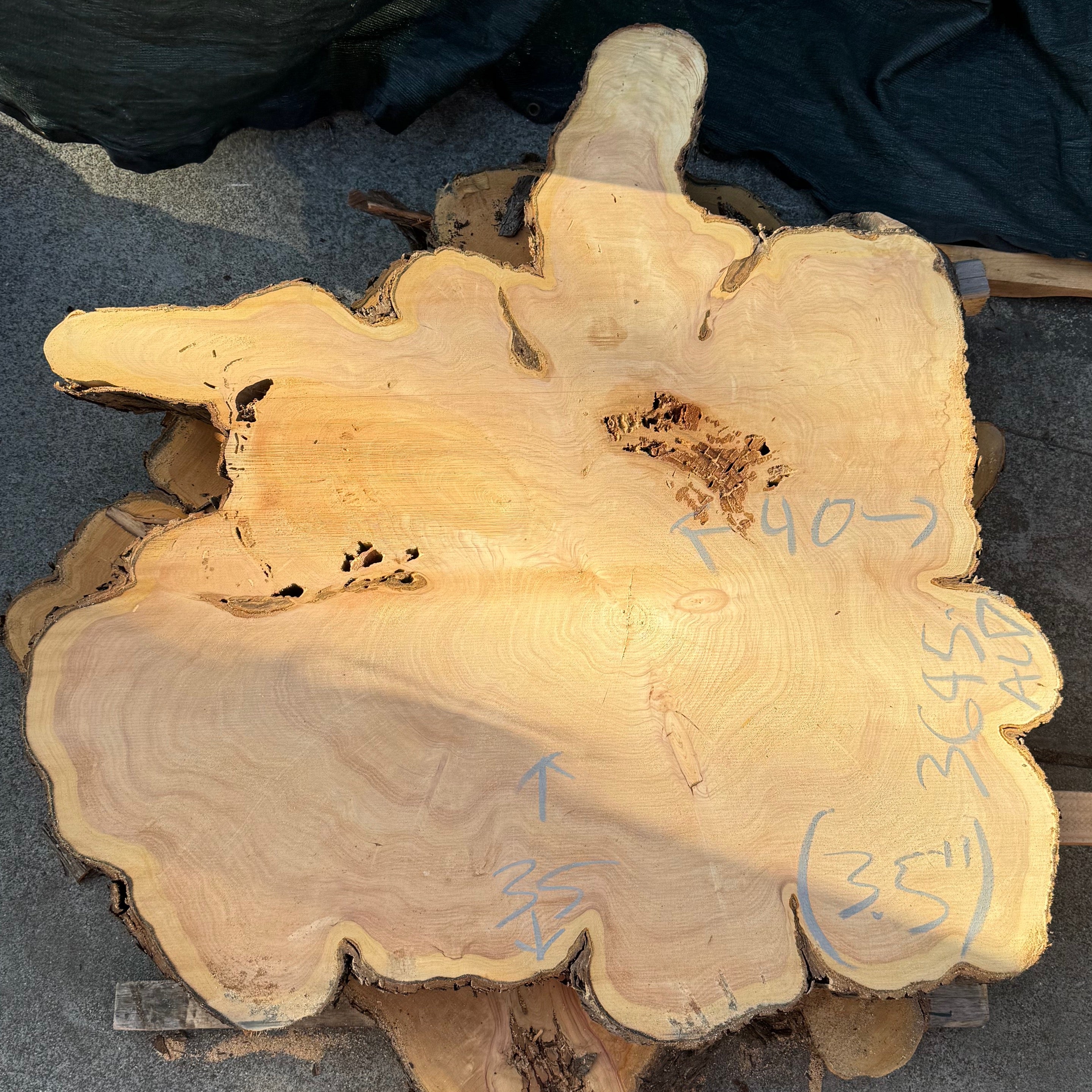 Monterey Cypress slab from Peroba Reclaimed measuring 3.5" thick x 35" wide x 40" long
