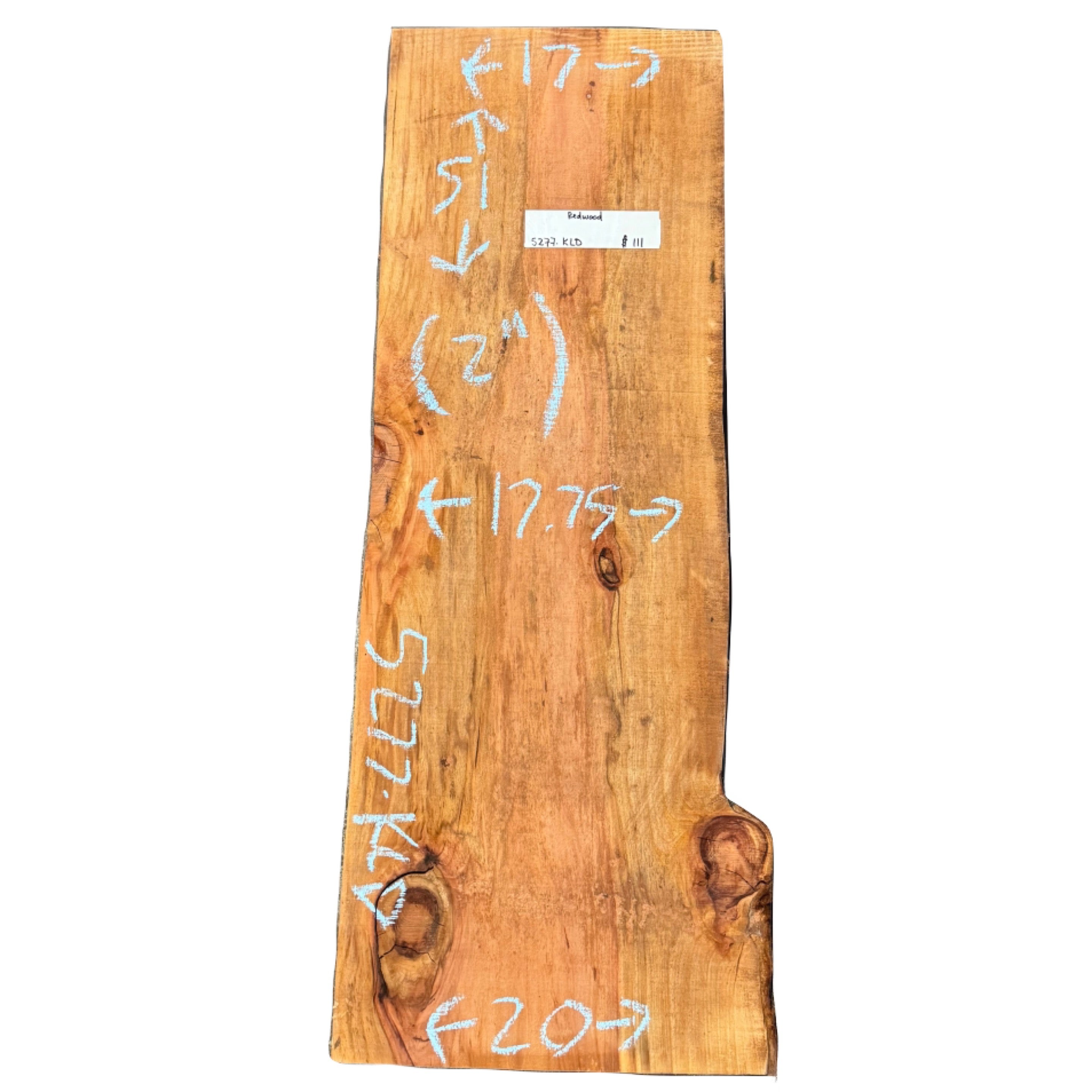 Redwood slab from Peroba Reclaimed measuring 2" thick x 17"-17.75"-20" wide x 51" long