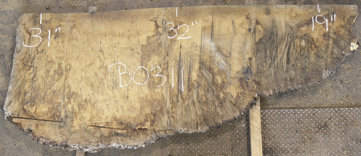 Maple (Big Leaf) slab from Berkshire Products measuring 1-3/4" thick x 26"-28"-37" wide x 6' 5" long