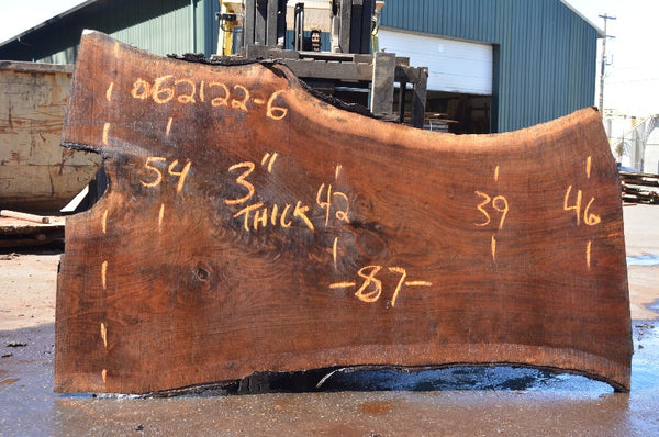 Black Walnut slab from Goby Walnut measuring 3" thick x 54"-42"-39"-46" wide x 87" long