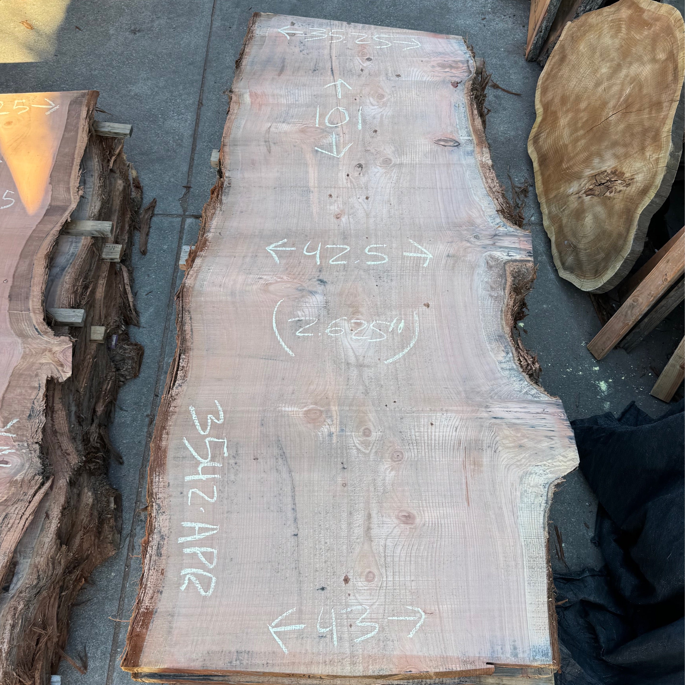 Redwood slab from Peroba Reclaimed measuring 2.625" thick x 35.25"-42.5"-43" wide x 101" long