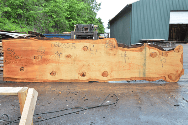 Fir slab from Goby Walnut measuring 3.25" thick x 58"-58"-57"-45"-40" wide x 254" long