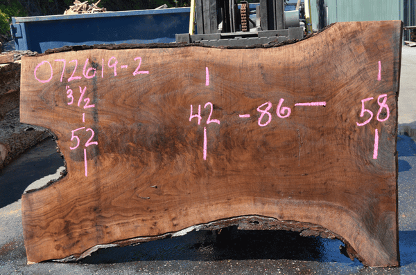 Black Walnut slab from Goby Walnut measuring 3.5" thick x 52"-42"-58" wide x 86" long