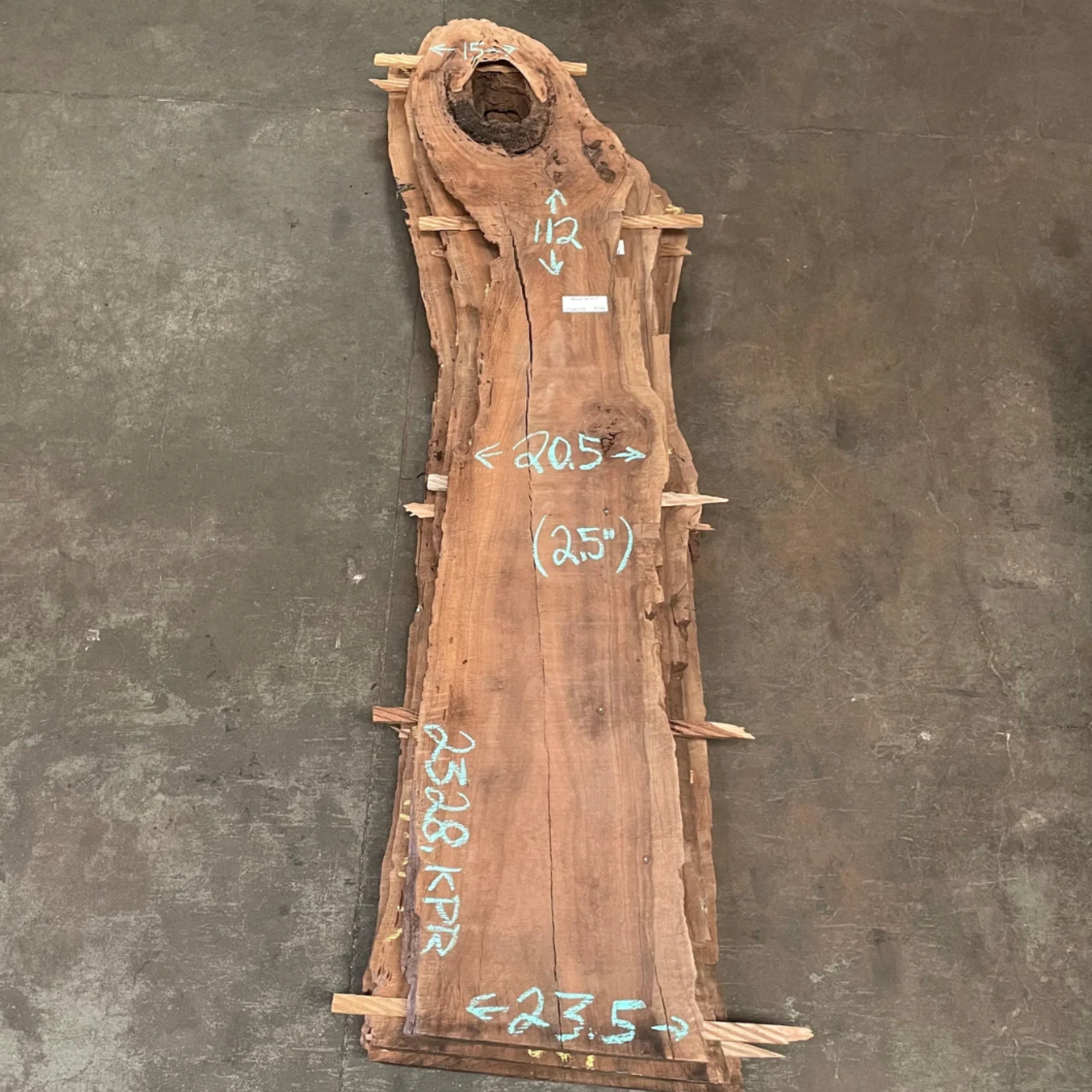 Black Walnut slab from Peroba Reclaimed measuring 2.5" thick x 15"-20.5"-23.5" wide x 112" long
