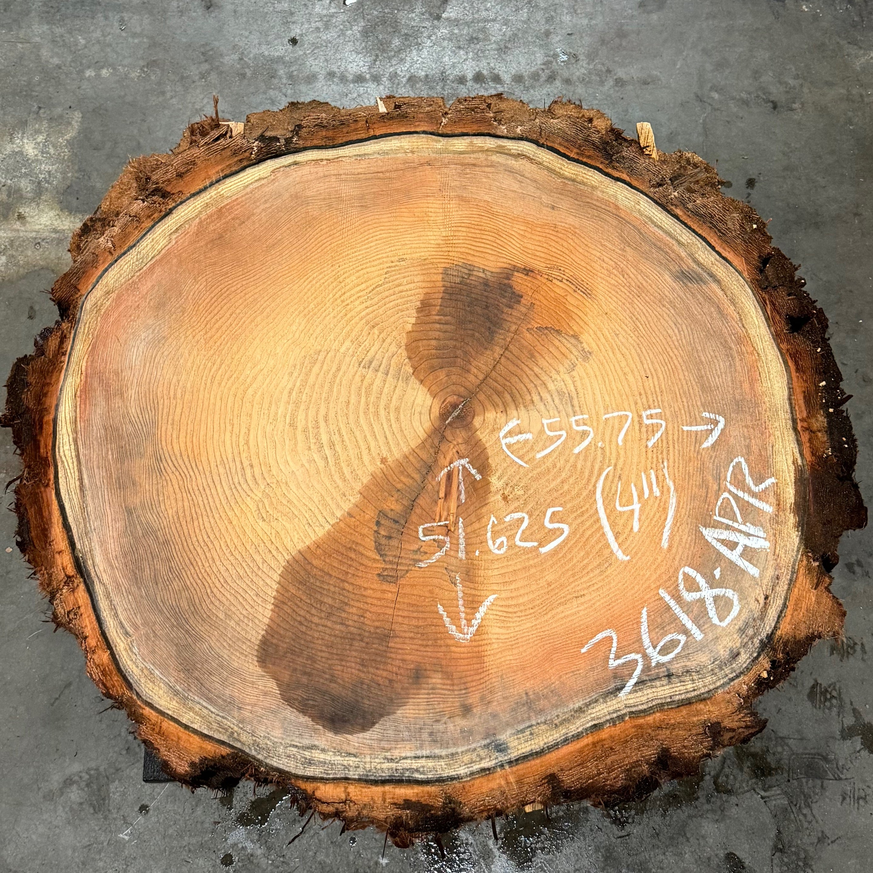 Redwood slab from Peroba Reclaimed measuring 4" thick x 51.625" wide x 55.75" long