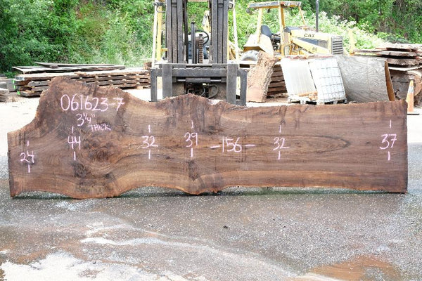 Black Walnut slab from Goby Walnut measuring 3.33" thick x 62"-48"-65" wide x 148" long