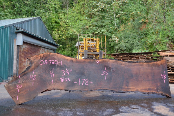 Black Walnut slab from Goby Walnut measuring 3.25" thick x 30"-48"-41"-35"-48" wide x 178" long