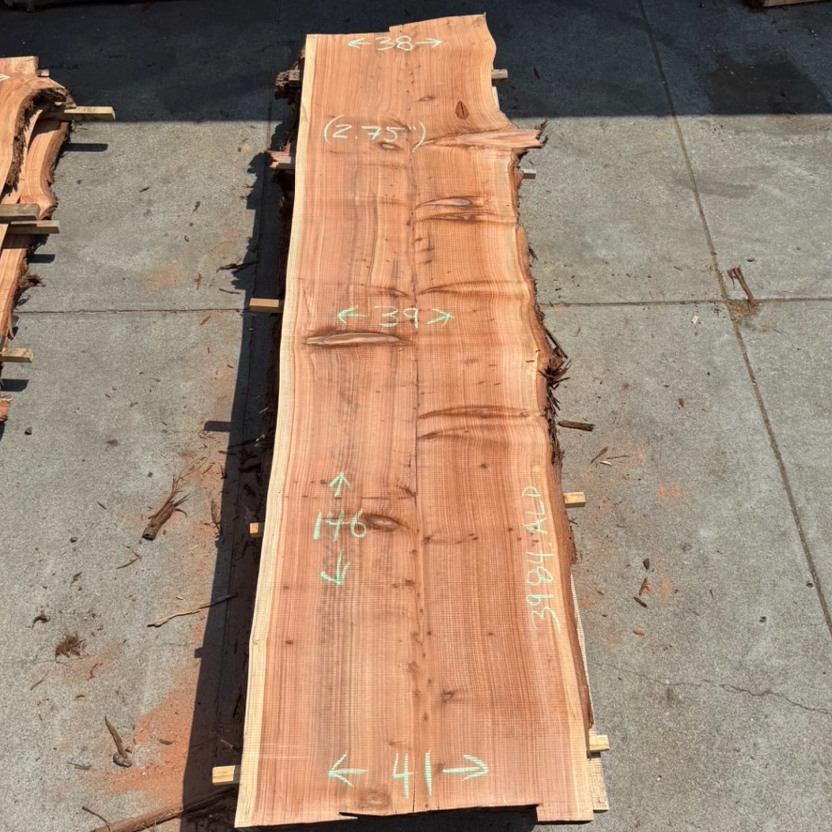 Redwood slab from Peroba Reclaimed measuring 2.75" thick x 38"-39"-41" wide x 146" long